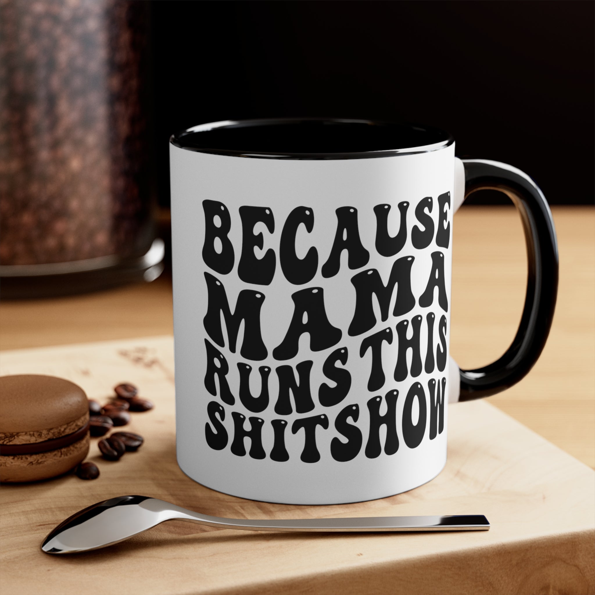 Because Mama Runs This Shitshow Accent Coffee Mug, 11oz