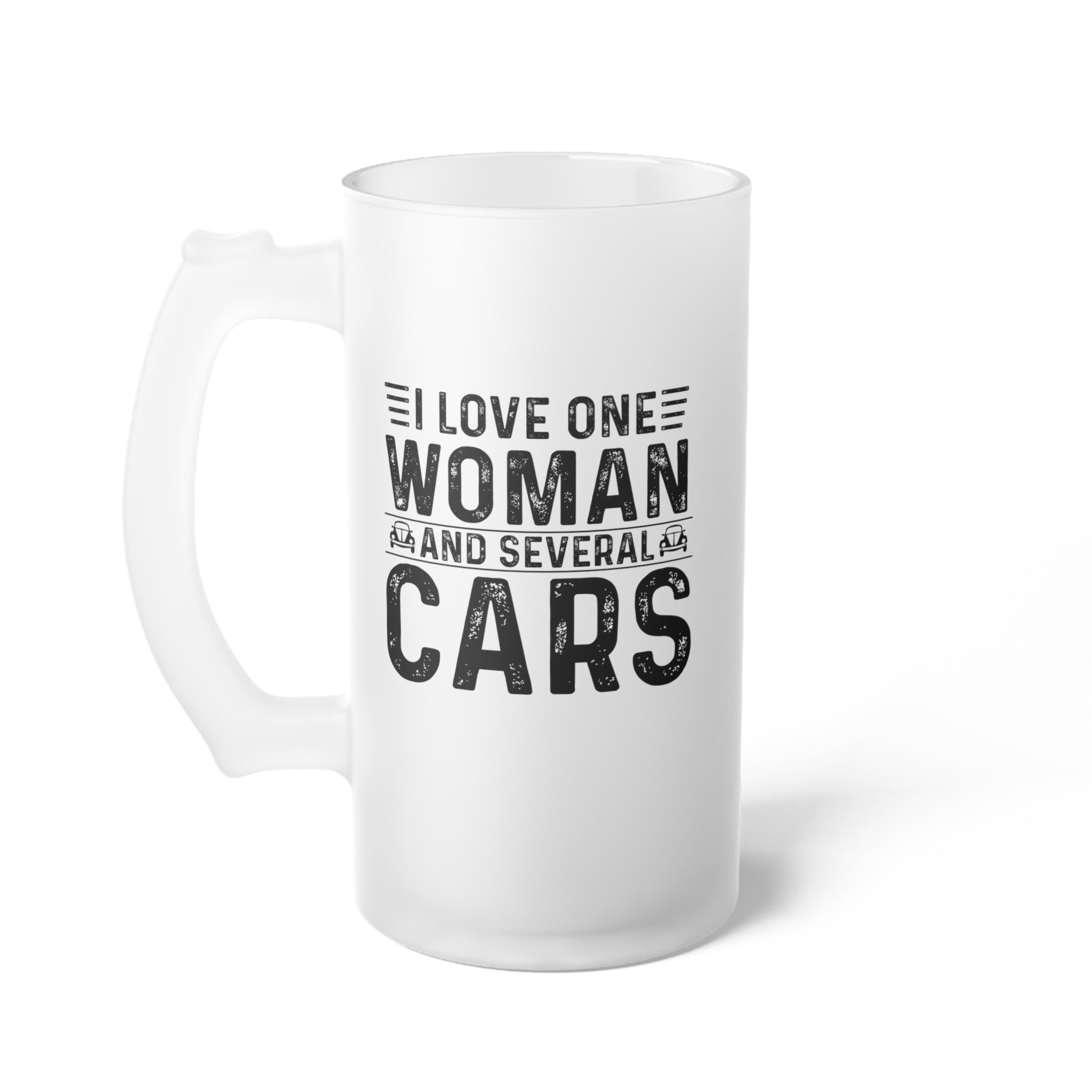 I Love One Woman and Several Cars Frosted Glass Beer Mug