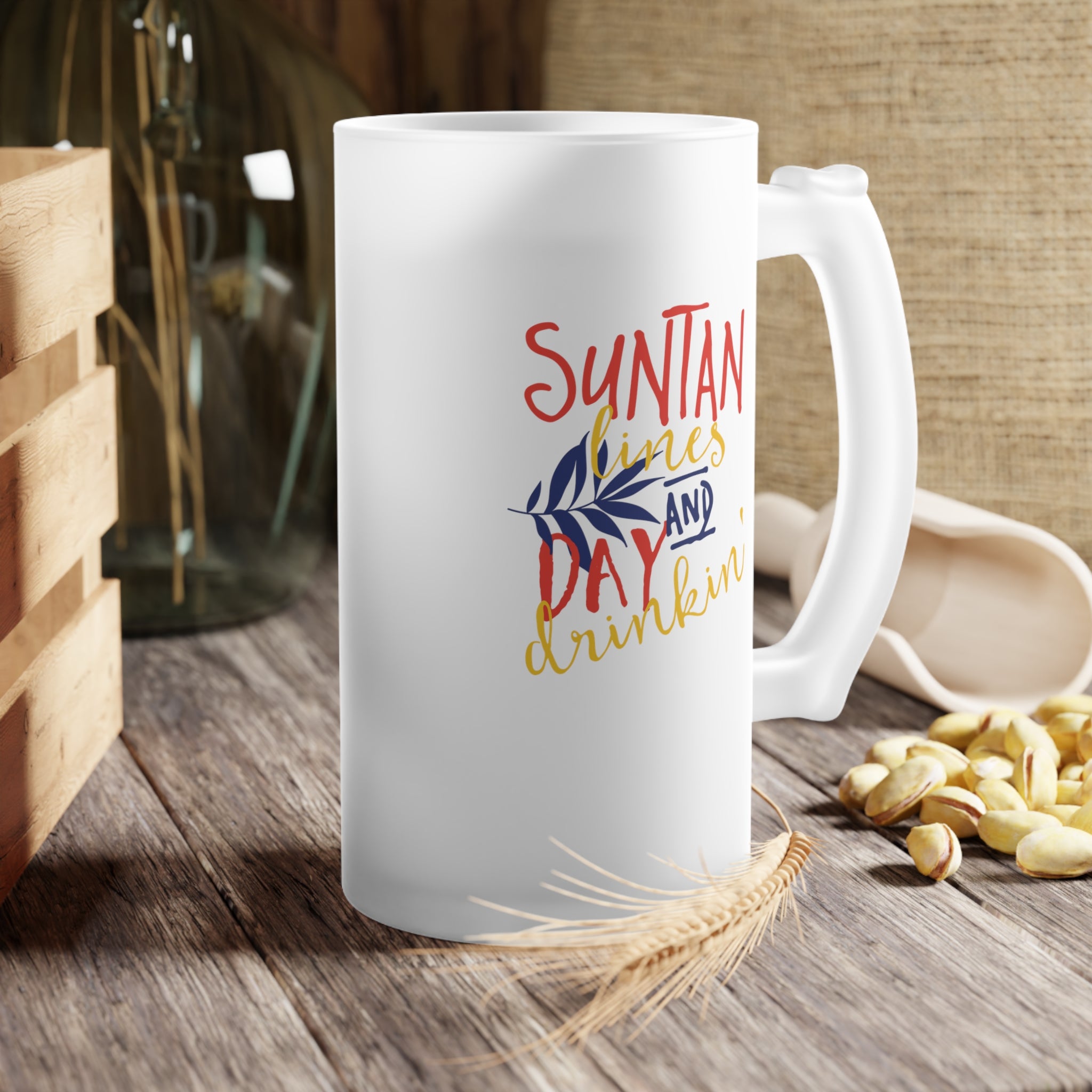 Suntan Lines & Day Drinkin Frosted Glass Beer Mug