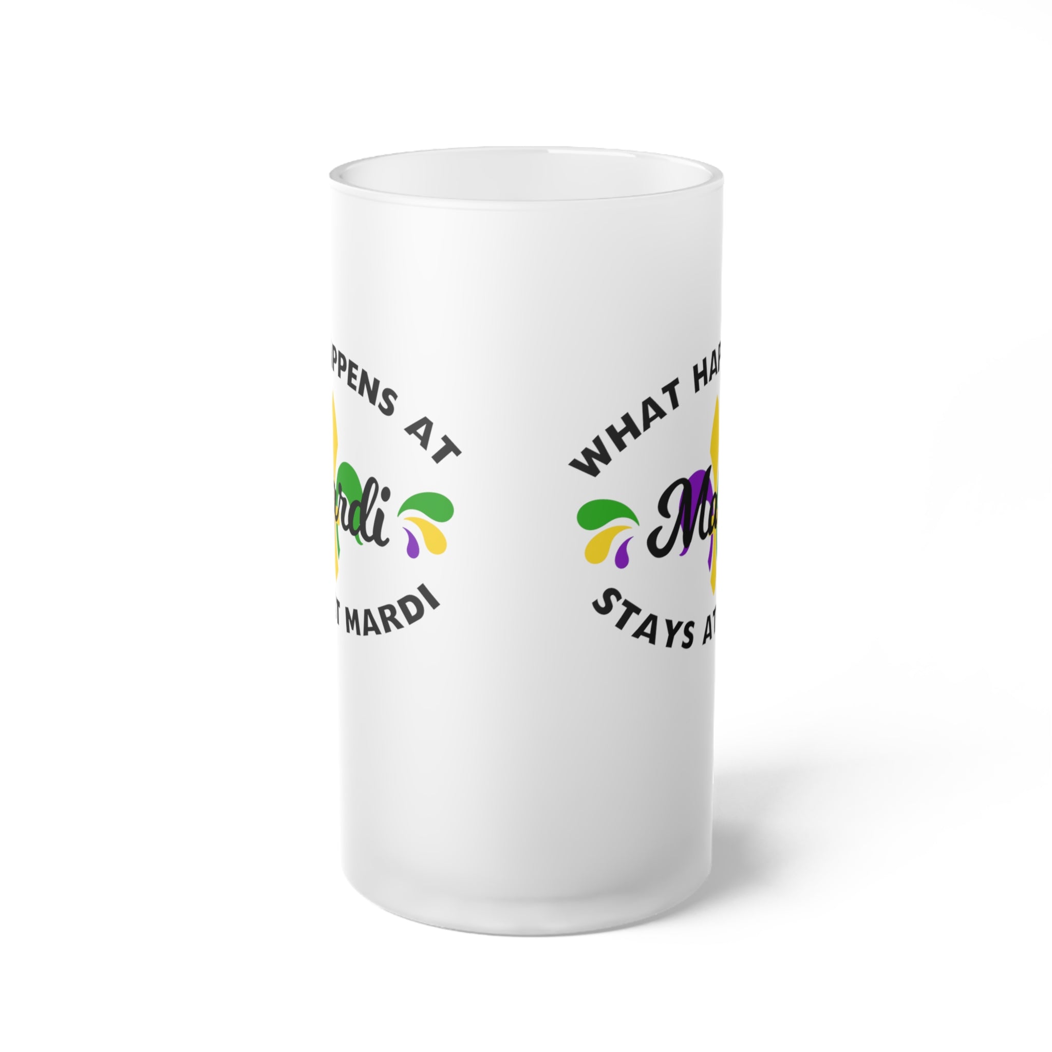 What Happens At Mardi Stays at Mardi Frosted Glass Beer Mug