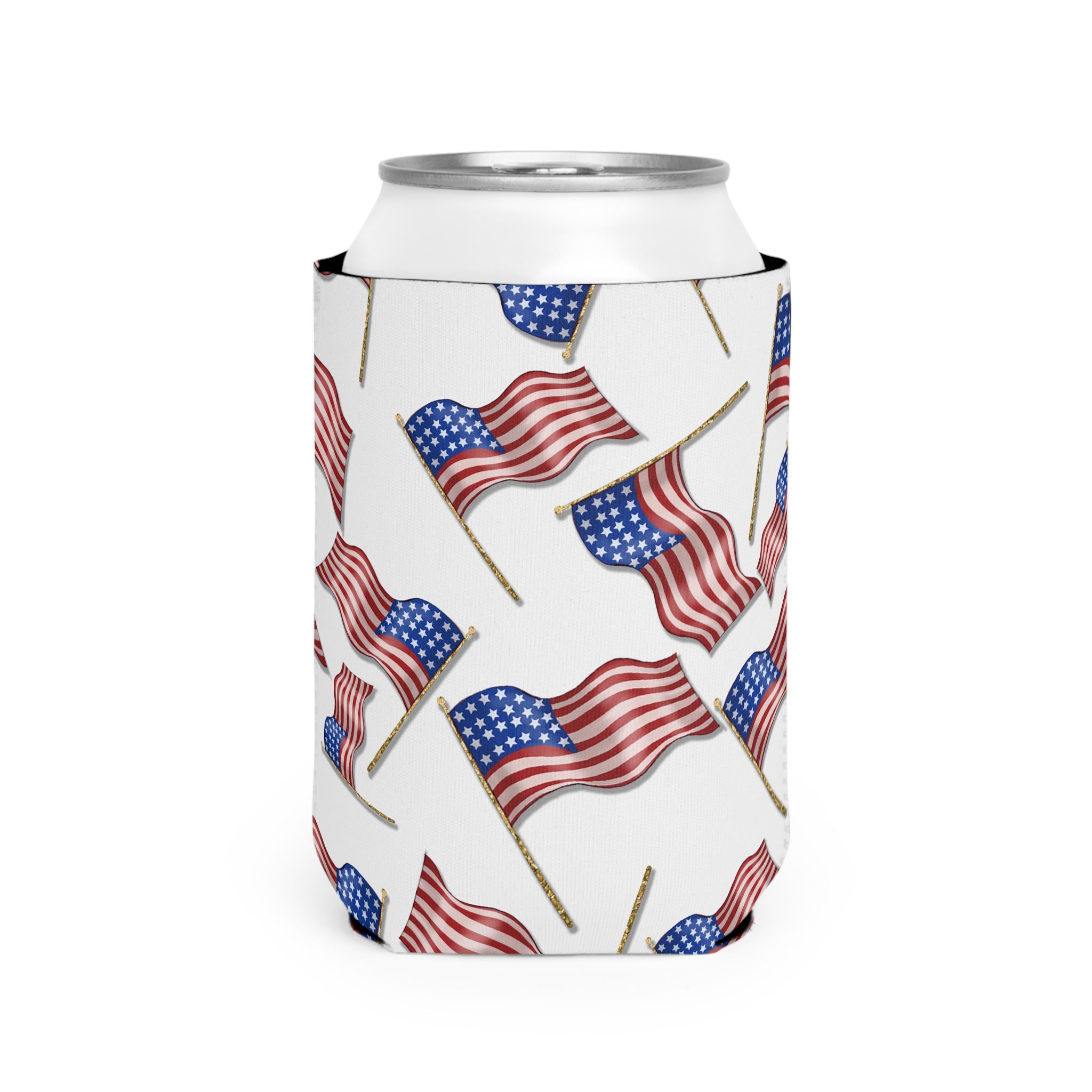 American Flag Themed Can Cooler Sleeve – White