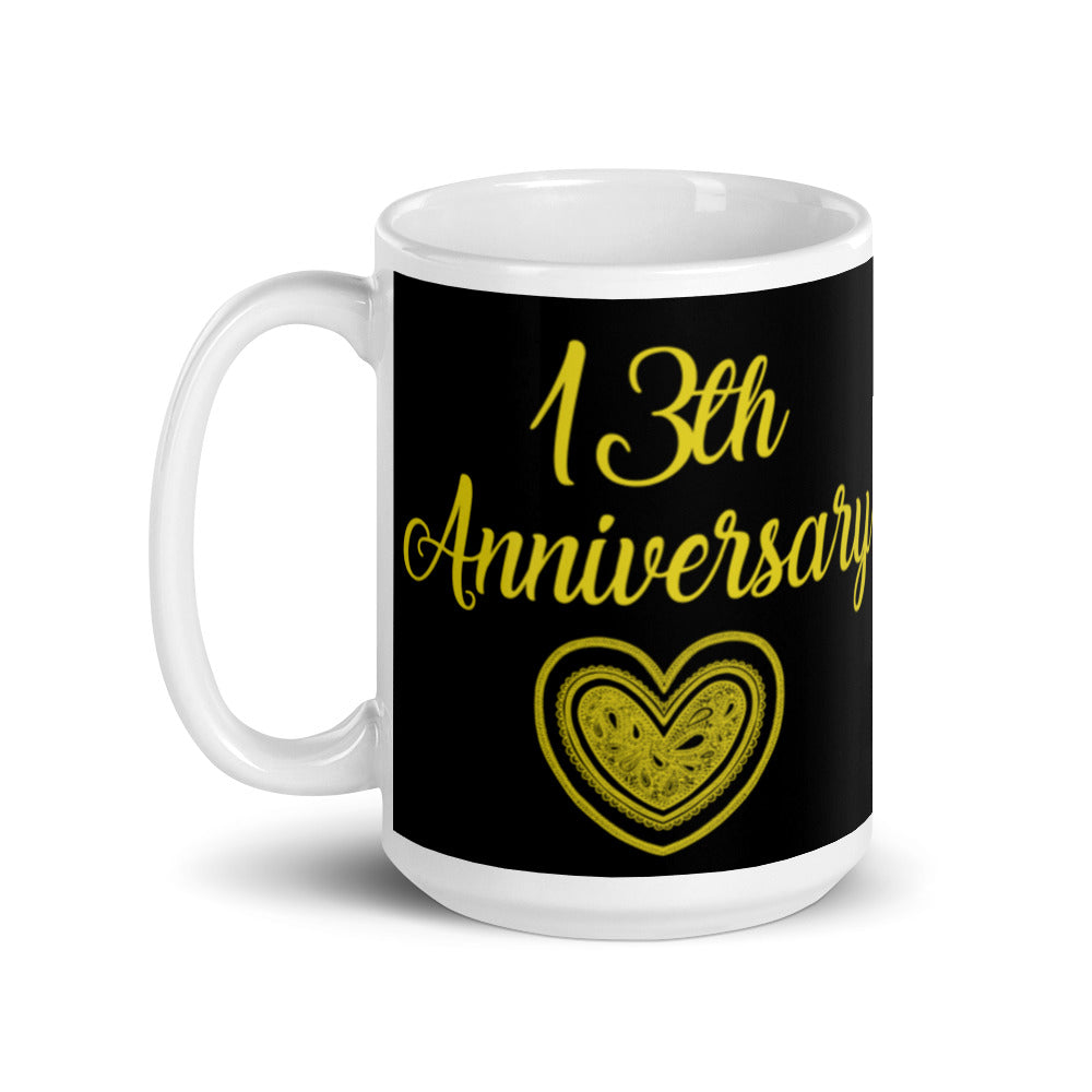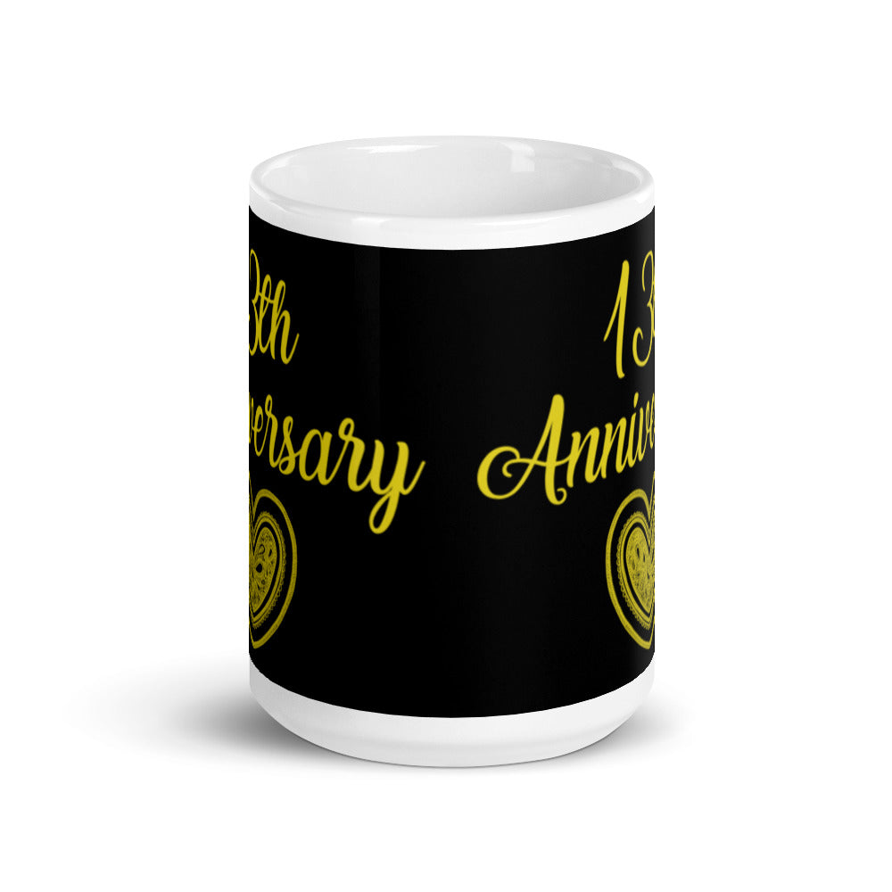 This mug is ideal for celebrating a 13th anniversary. It can also be used as a daily drinking mug for coffee, tea, or other beverages.