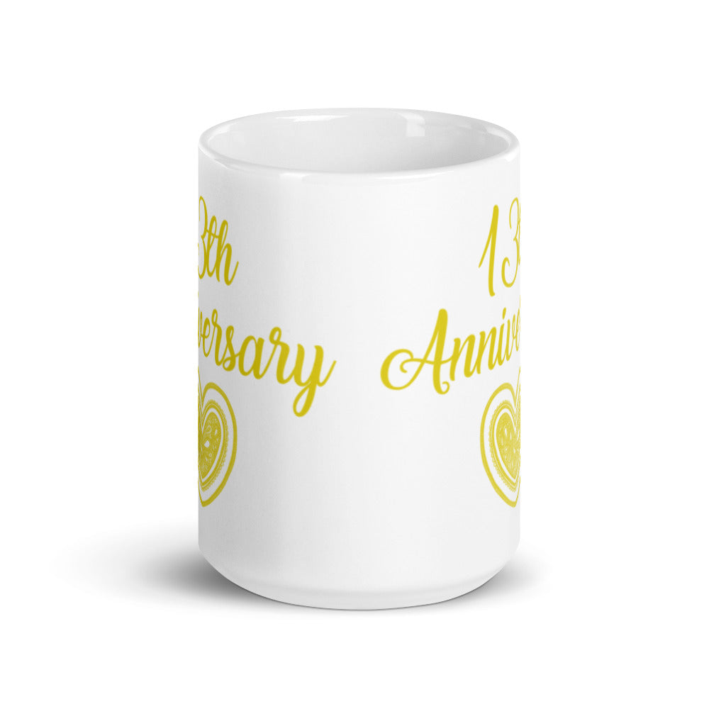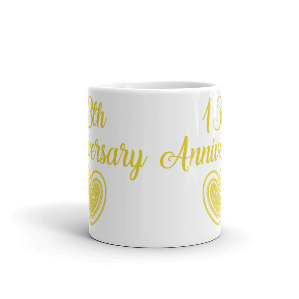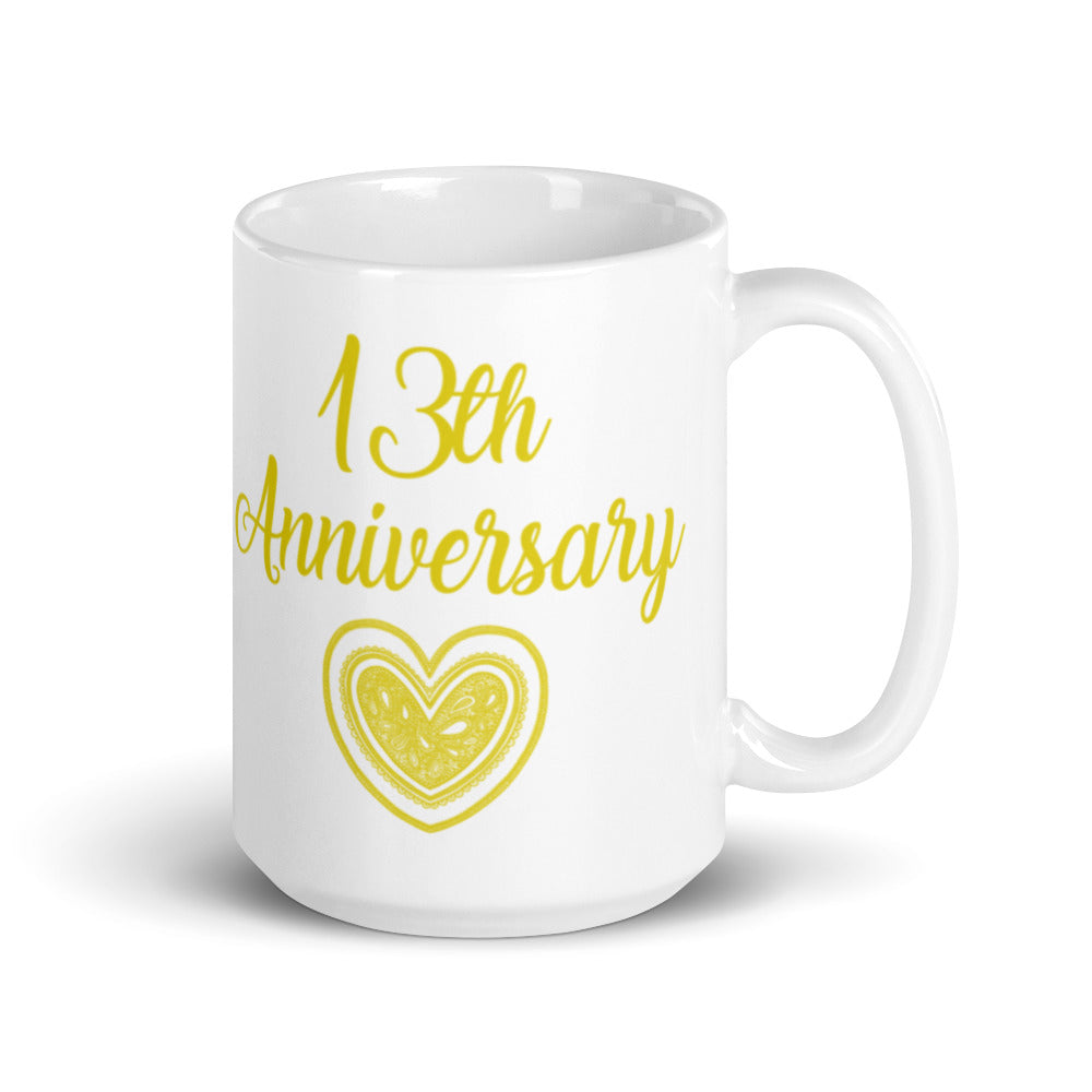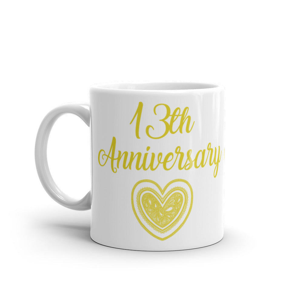 - Design: Features a “13th Anniversary” text in cursive script and a heart motif in gold