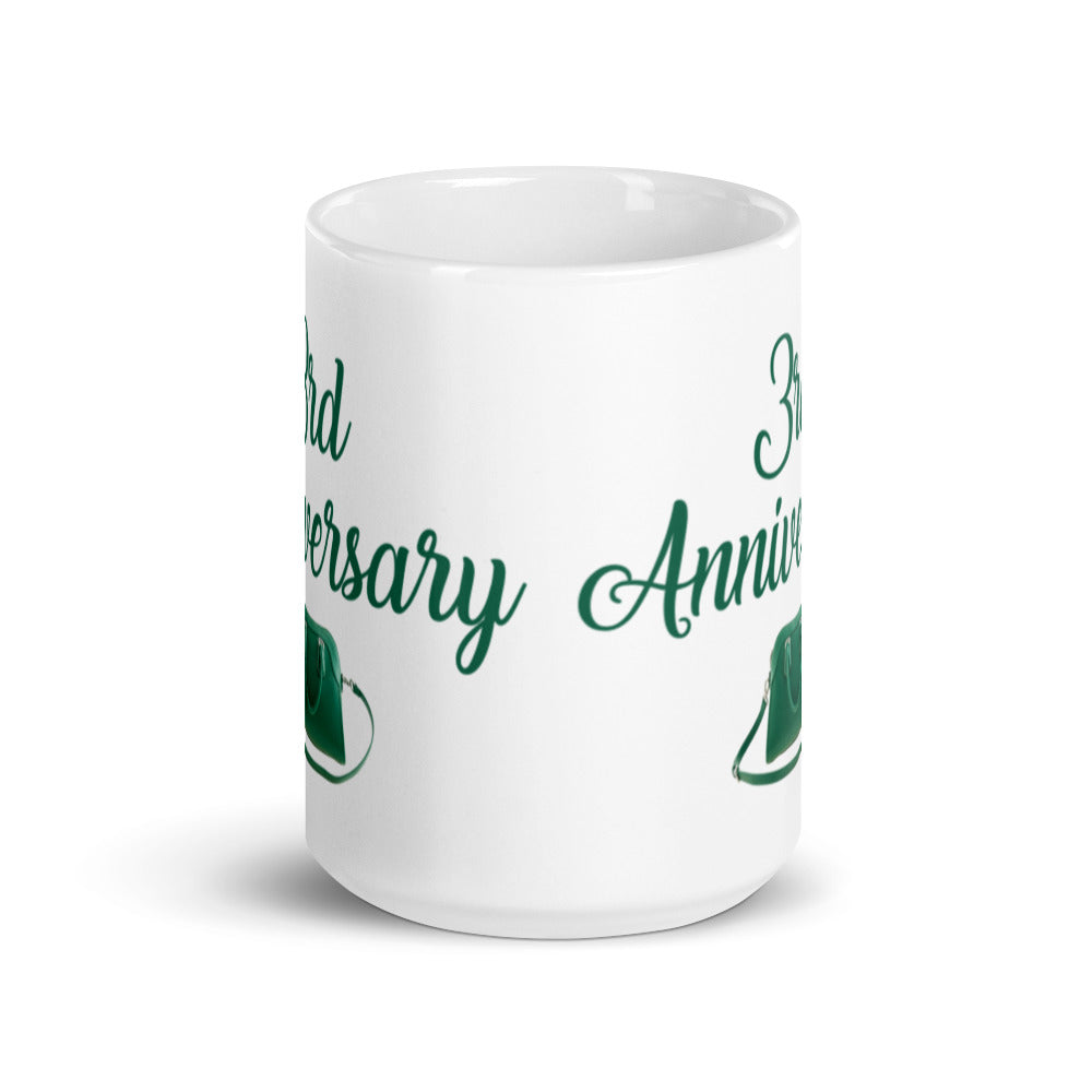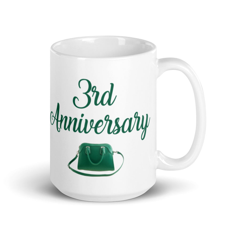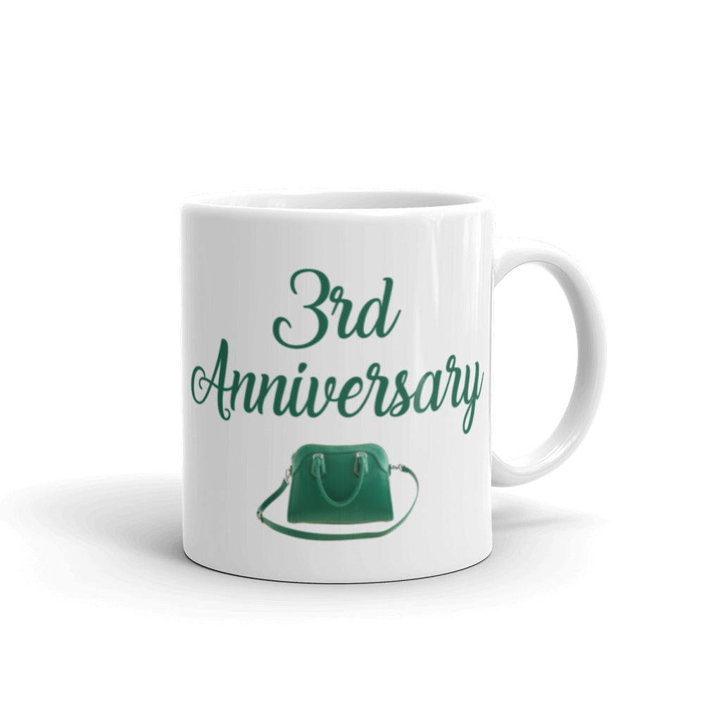 - Design: Features “3rd Anniversary” text in cursive script and a green handbag graphic