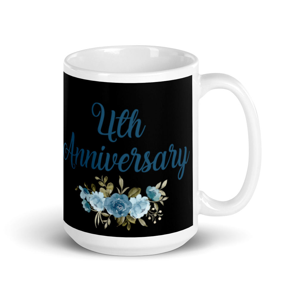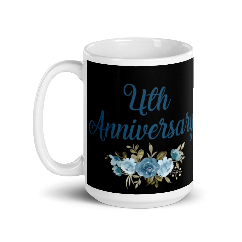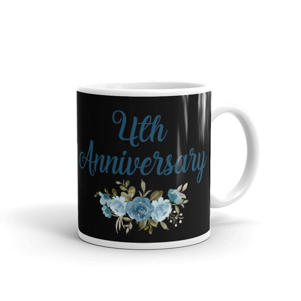 - Design: Features blue cursive text ‘4th Anniversary’ and blue watercolor floral arrangements with green leaves