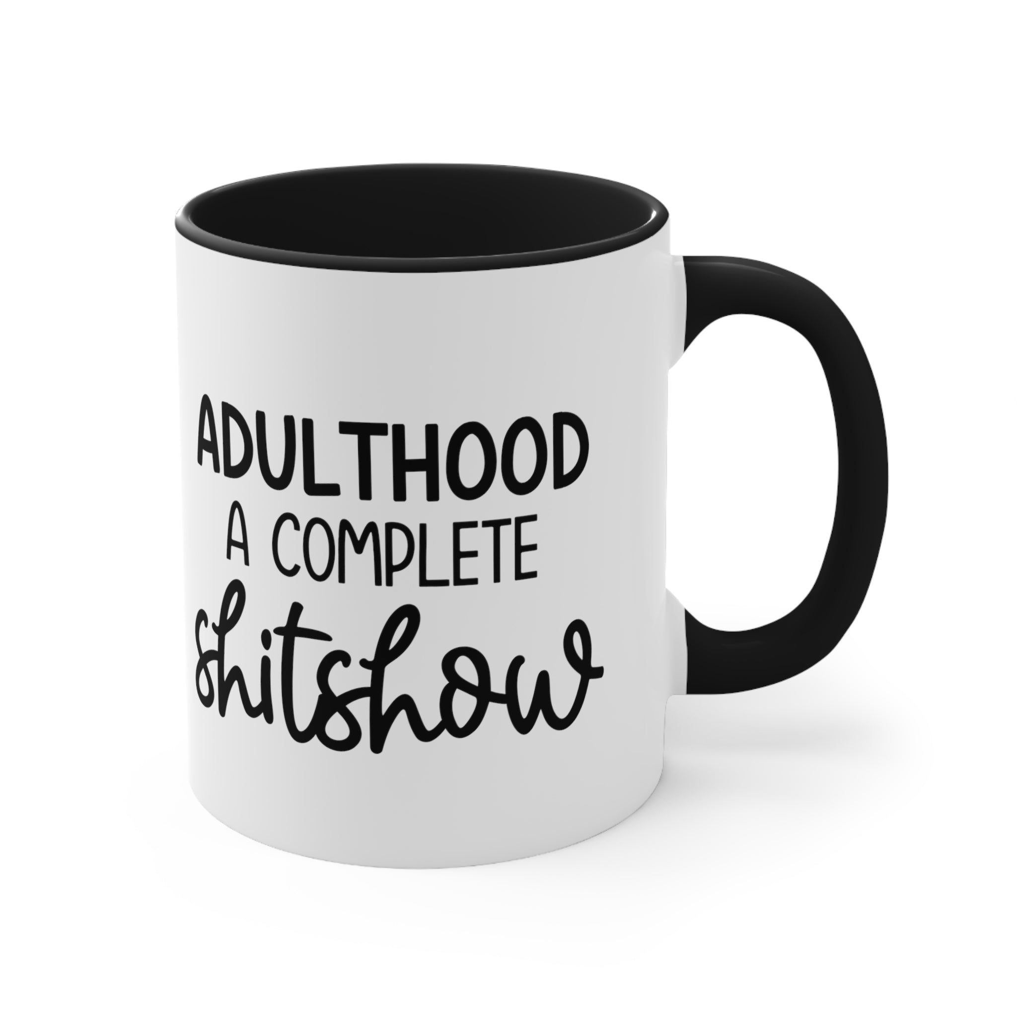 Introducing the Adulthood A Complete Shitshow Accent Coffee Mug, a must – have for anyone who can relate to the chaos of adulthood! This 11oz ceramic mug is the perfect blend of functionality and humor, making it ideal for daily hot beverage consumption or as a novelty gift.