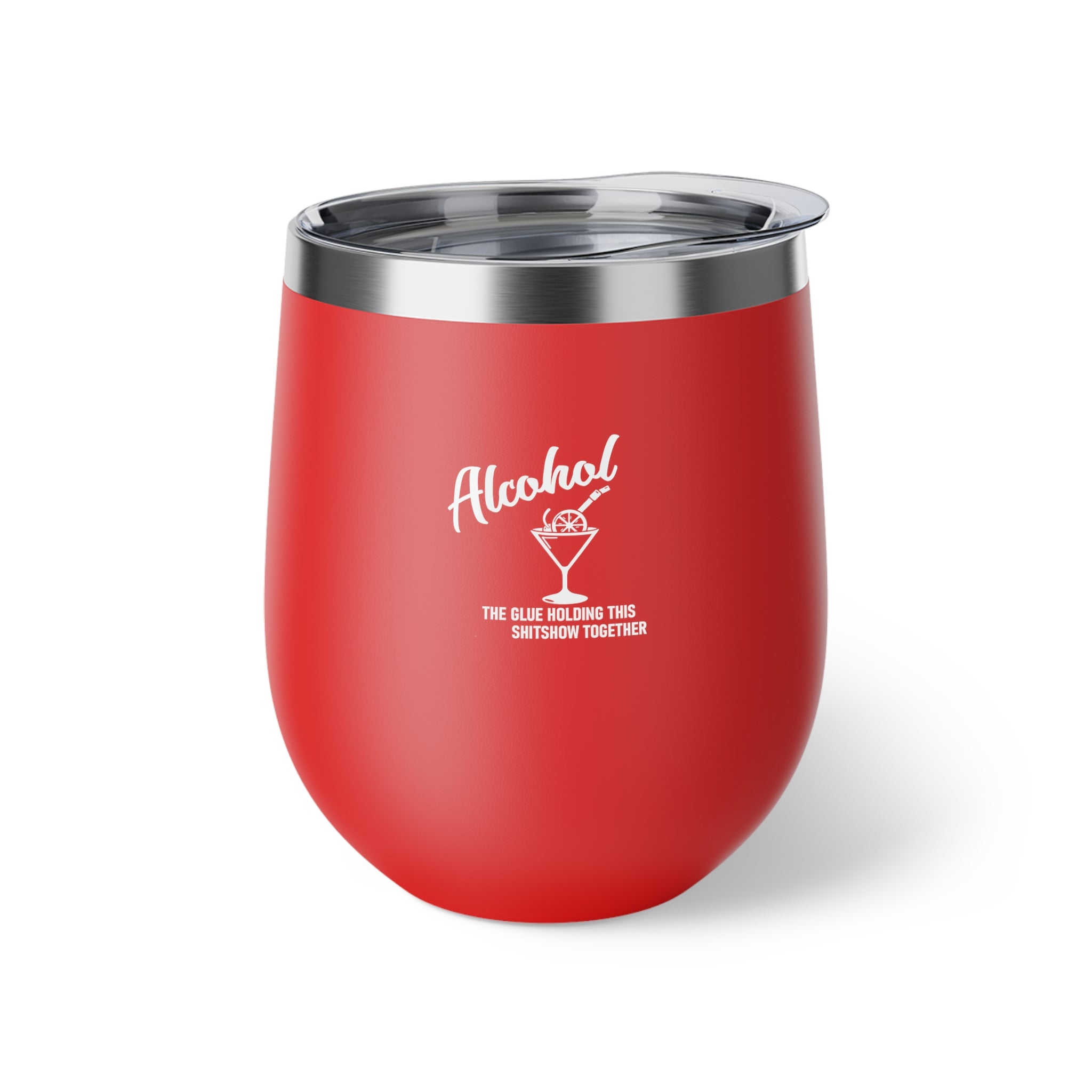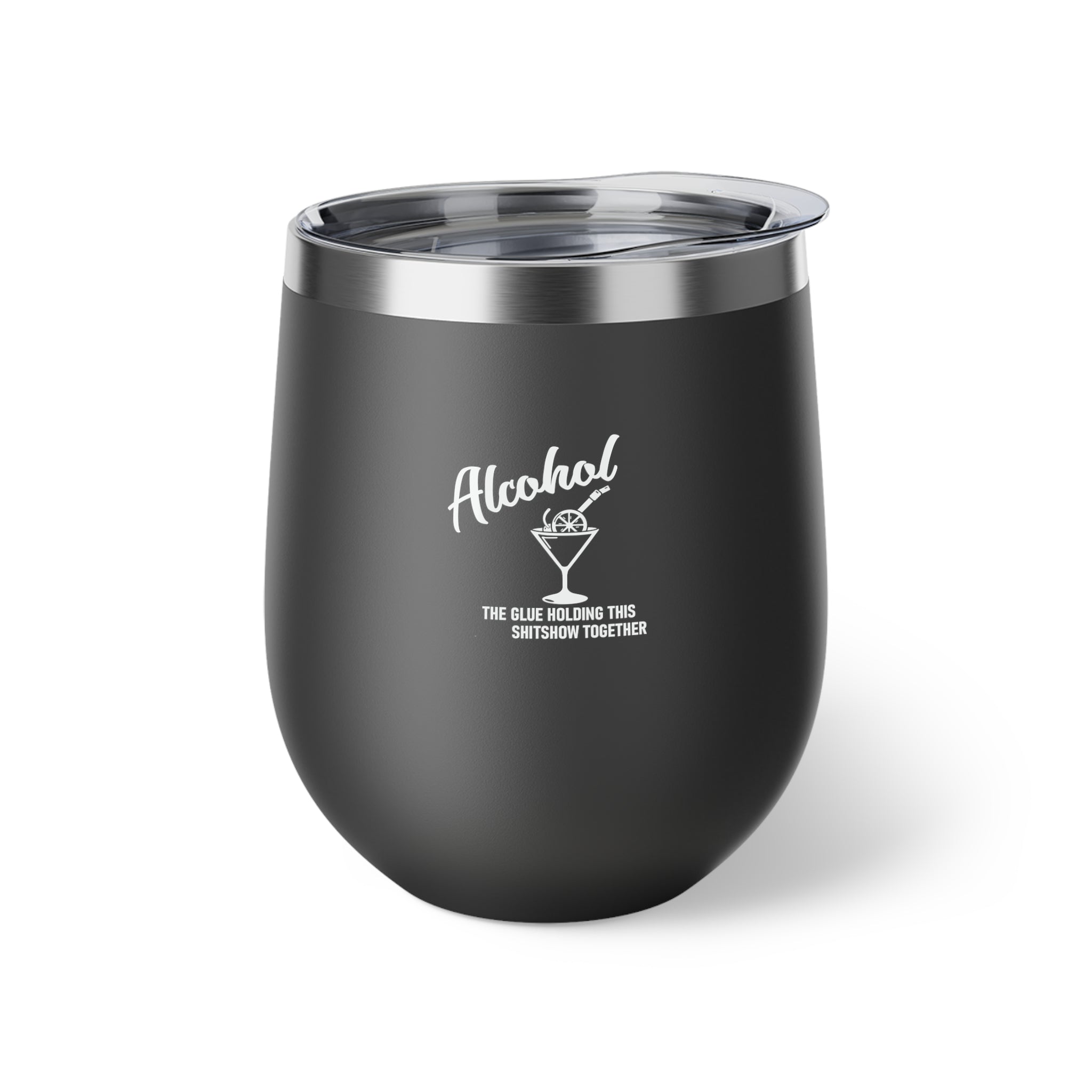 Introducing the Alcohol The Glue Holding This Shitshow Together Copper Vacuum Insulated Cup, a 12oz double – walled insulated wine tumbler that combines style, functionality, and a touch of humor. This stemless wine cup is perfect for those who want to enjoy their favorite drinks at the right temperature, whether at home, during outdoor events, or while traveling.