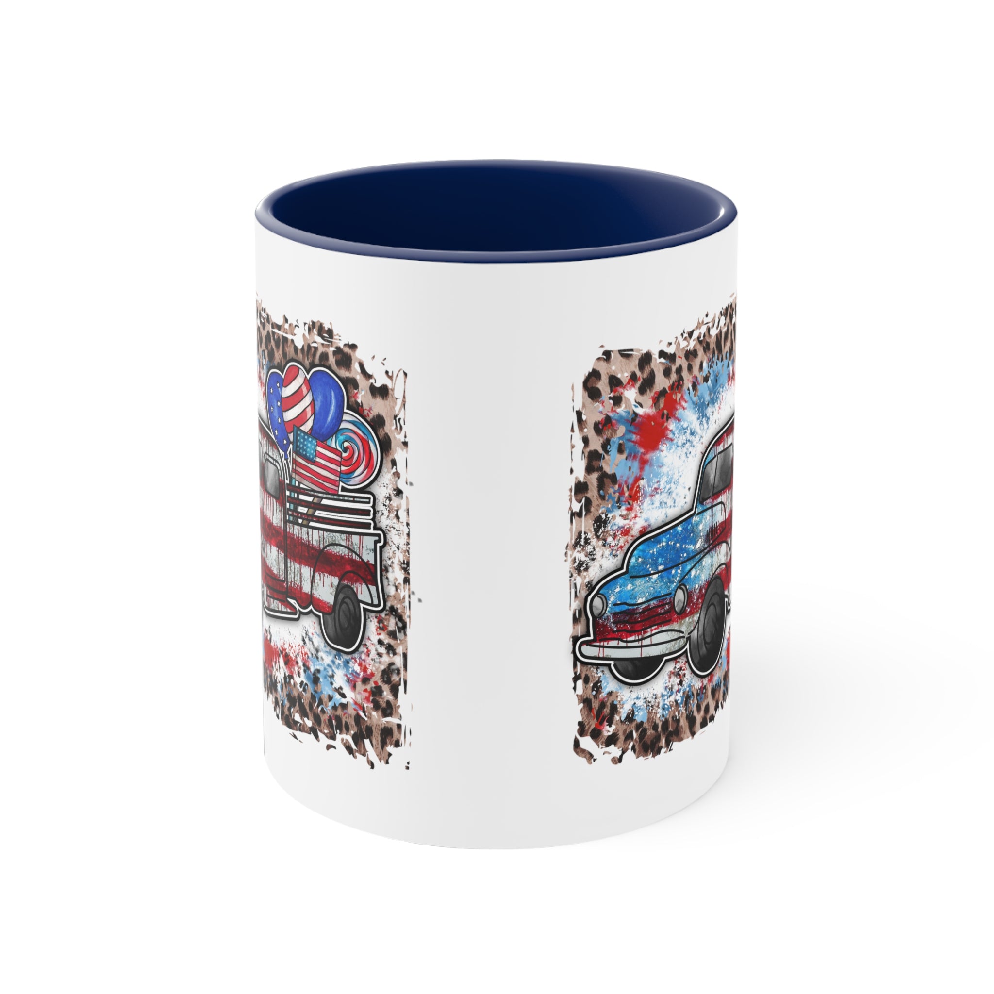Introducing the American Classic Car Accent Coffee Mug, a perfect blend of style and functionality! This 11oz ceramic mug is designed to hold your favorite hot or cold beverages with a touch of patriotic flair.
