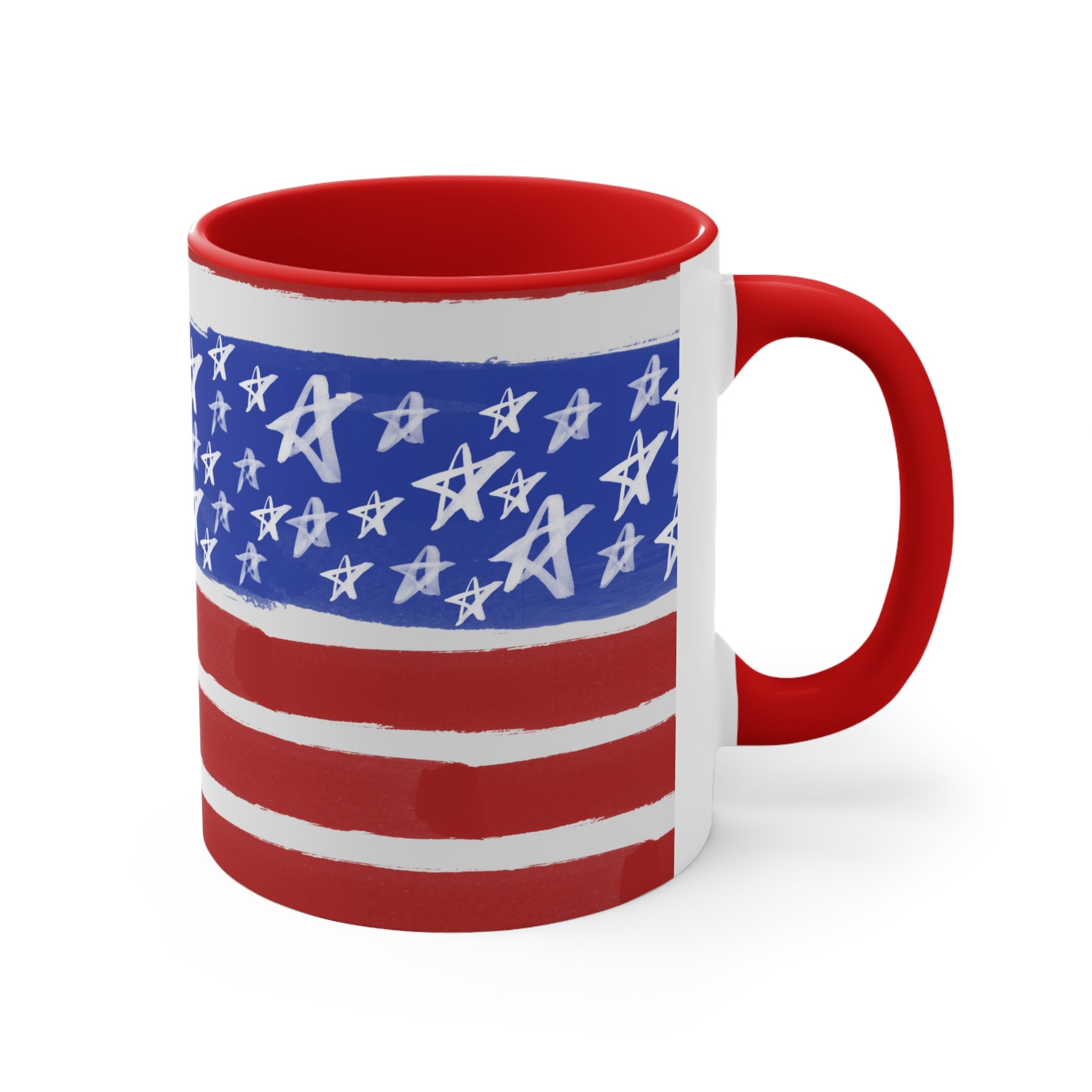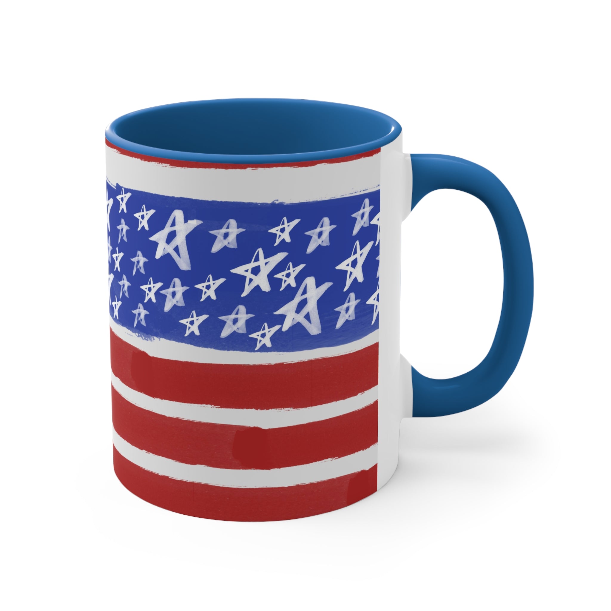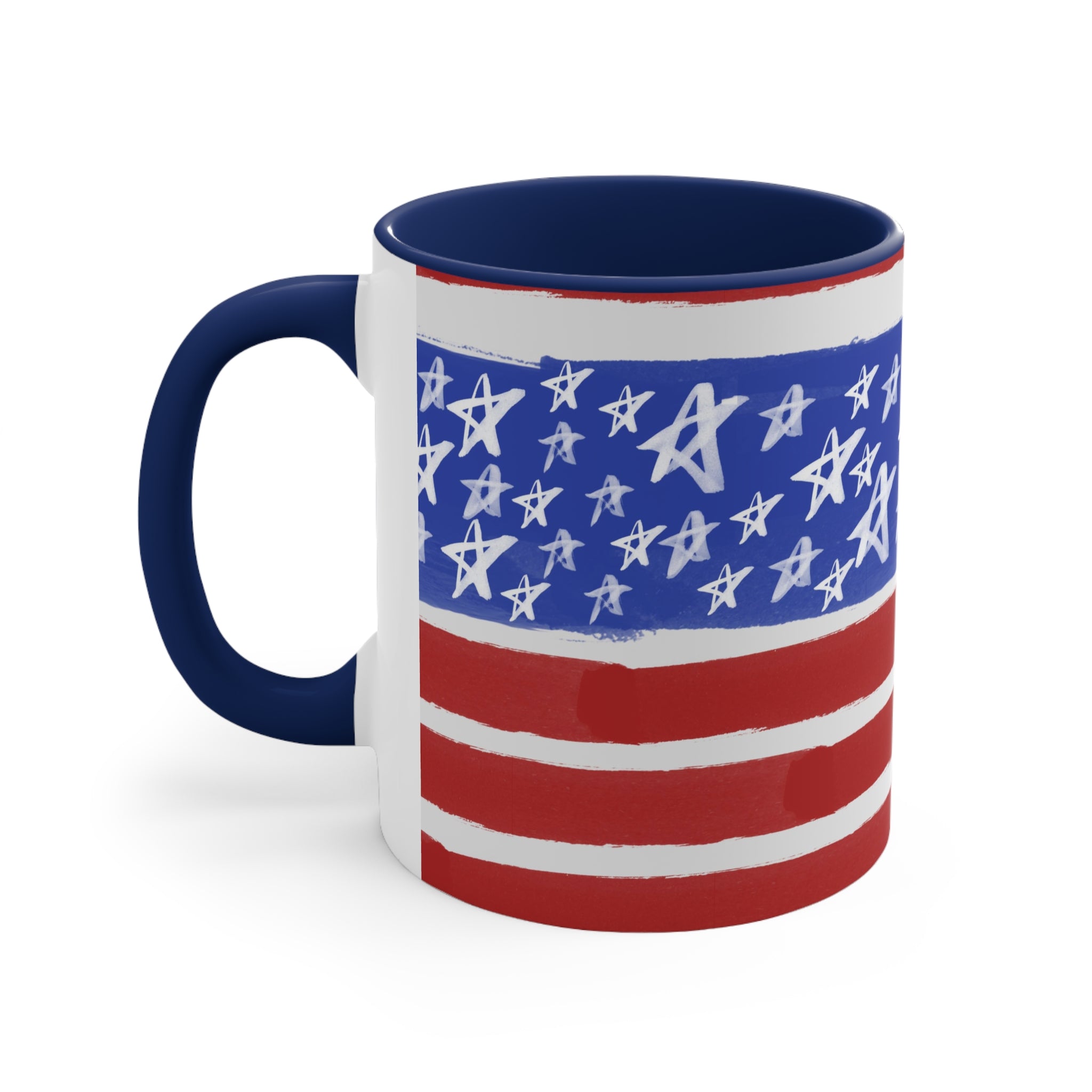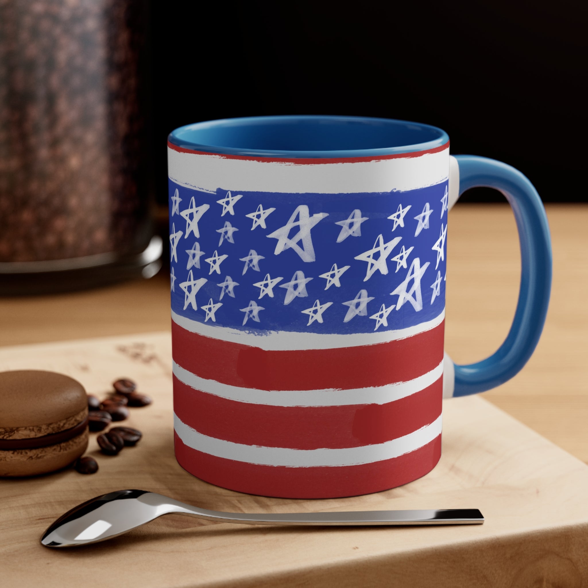 Indulge in your daily hot beverages with a patriotic touch using our American Flag Themed Accent Coffee Mug! This 11oz ceramic mug is a perfect blend of functionality and artistic charm, designed to make your coffee breaks more special.