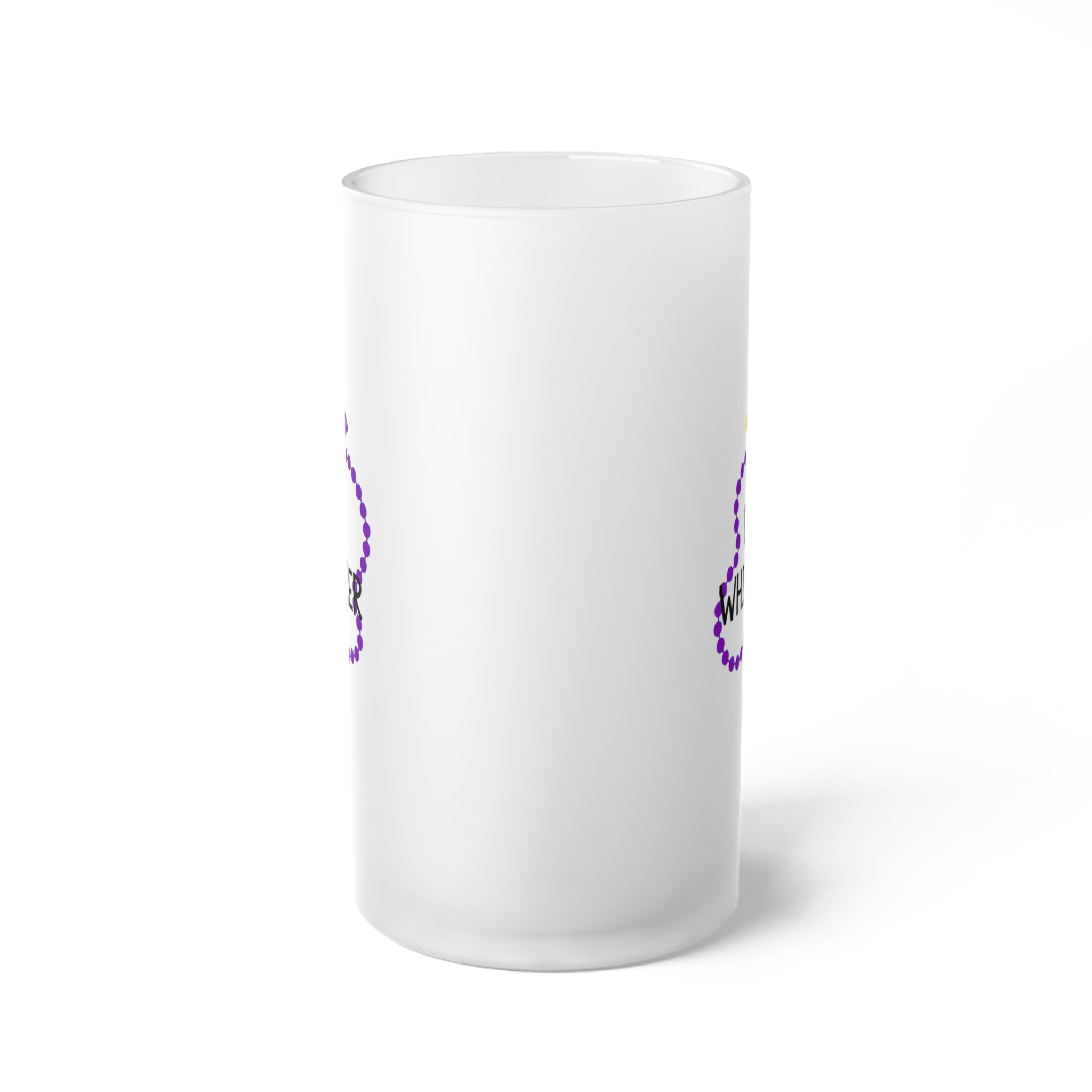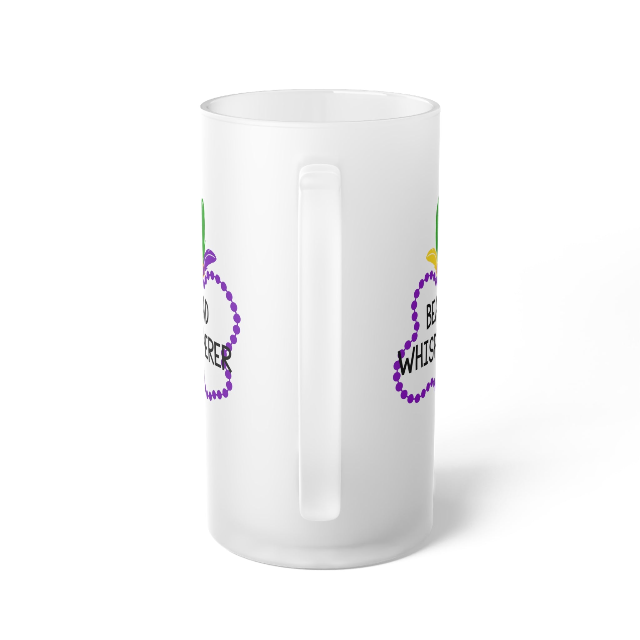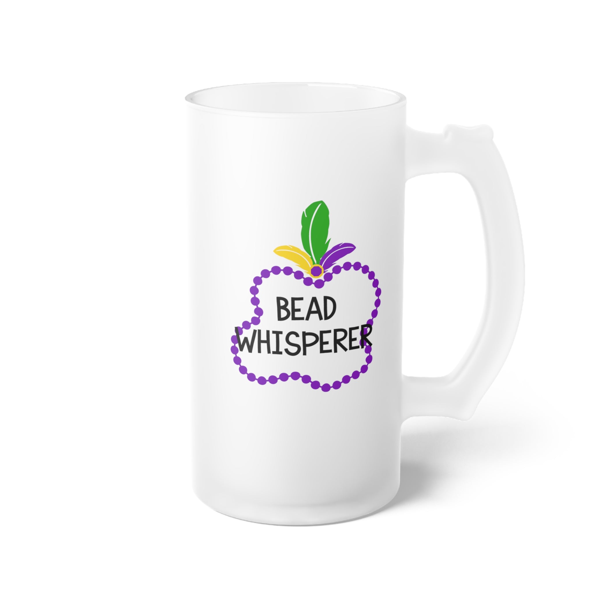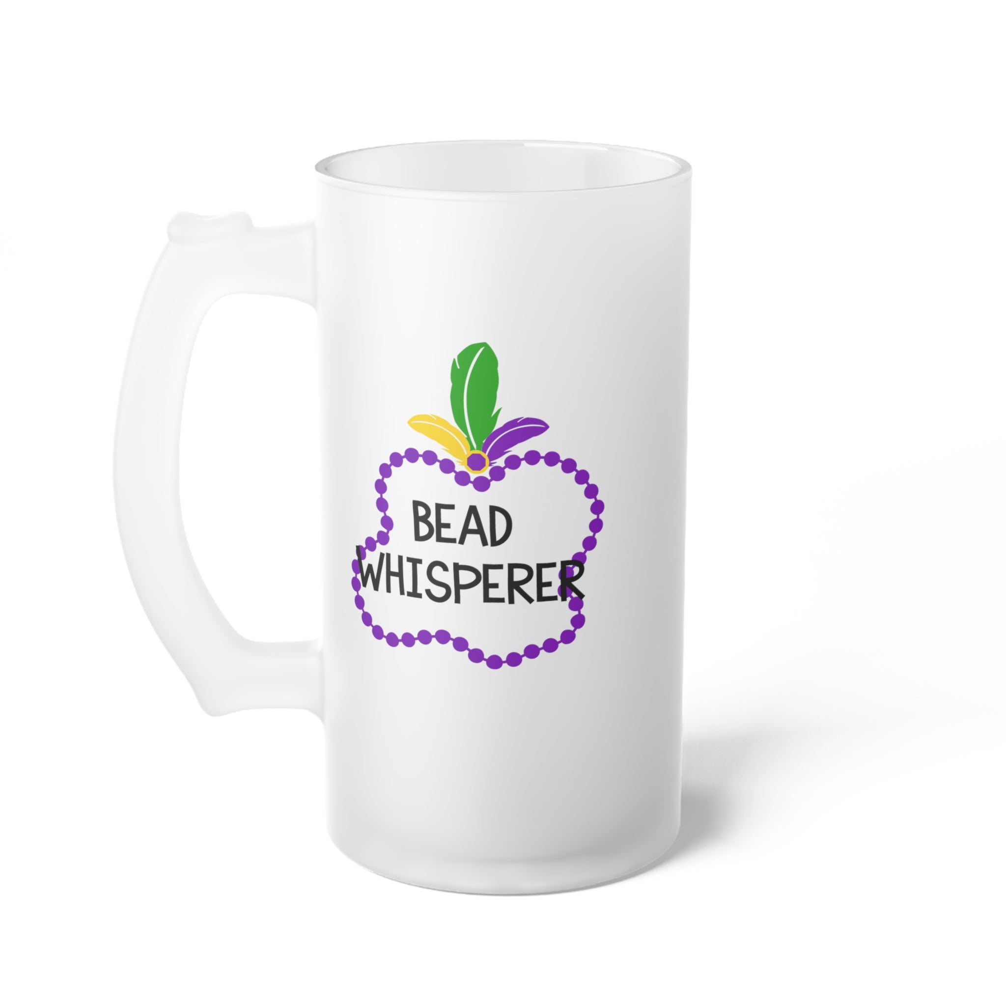 Introducing the Bead Whisperer Frosted Glass Beer Mug, a unique and festive addition to your drinkware collection! This novelty drinking vessel is a frosted glass or ceramic beer stein with a handle, designed specifically for casual, celebratory use.