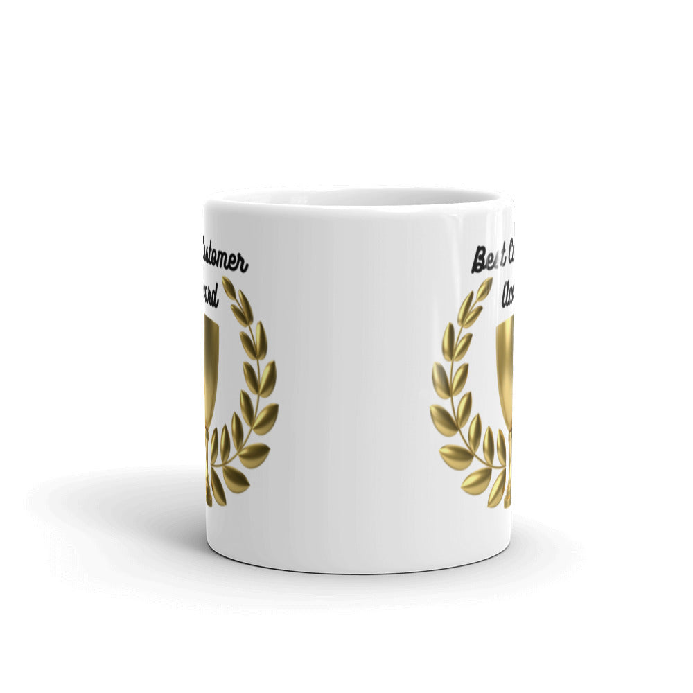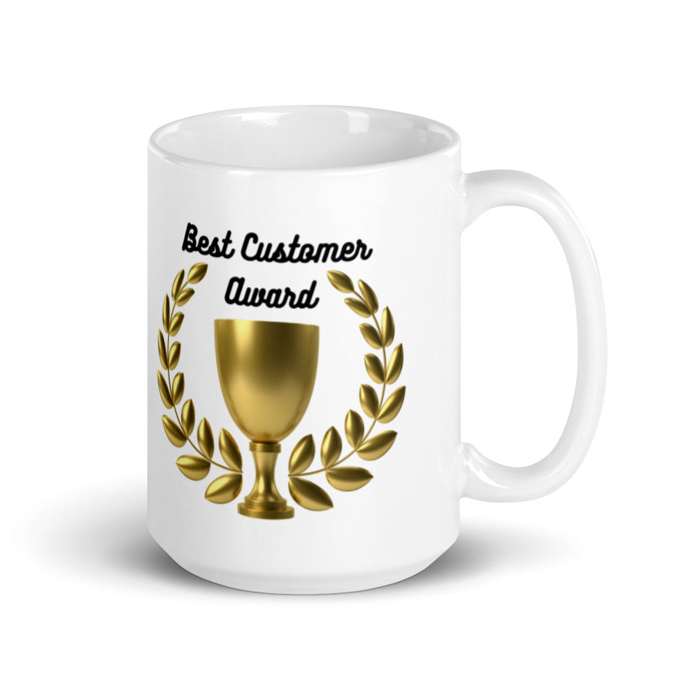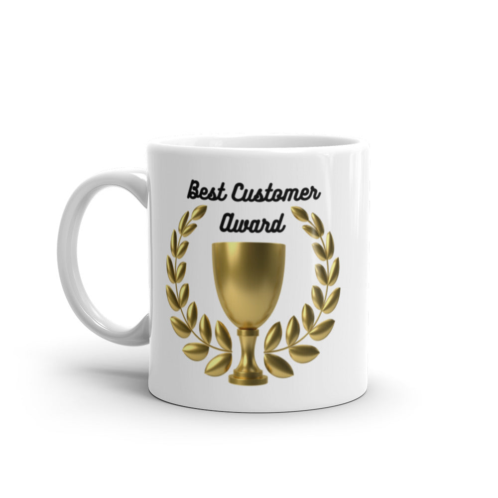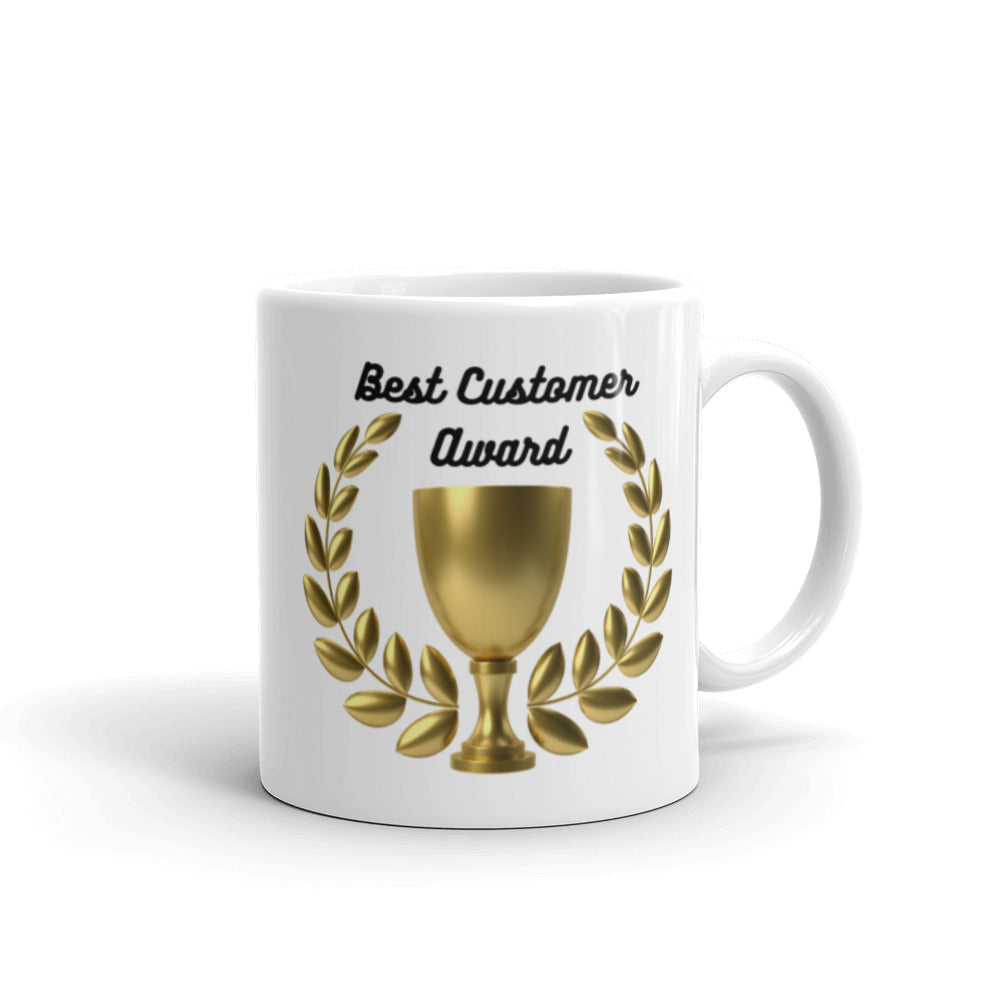 - Design: Features a gold laurel wreath, a 3D gold trophy, and black cursive text saying ‘Best Customer Award’