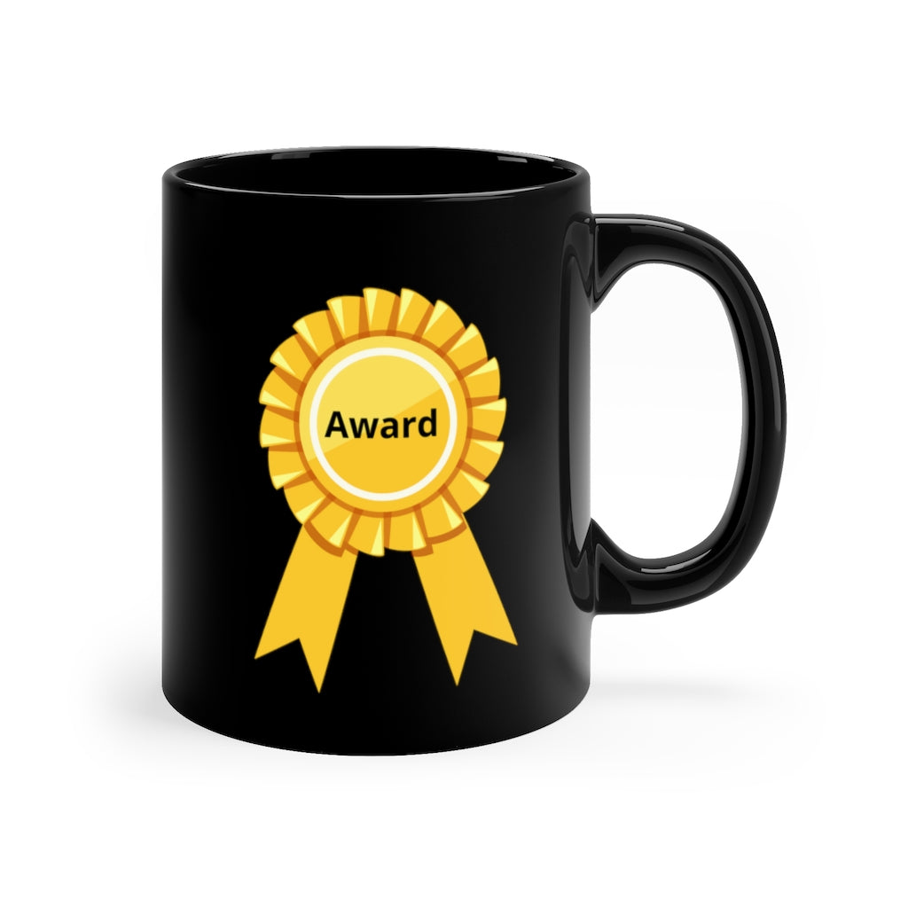 - Design: A prominent yellow award rosette with the word “Award” in bold black text on the front