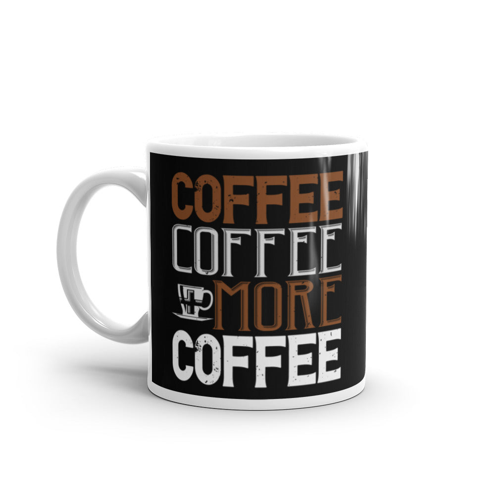 - Design: Bold, stacked text with a distressed vintage aesthetic, including brown/orange, white, and black text, and a white coffee cup icon