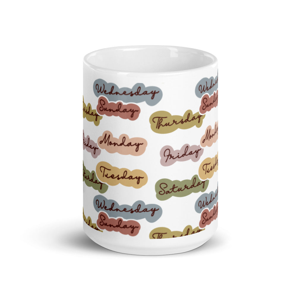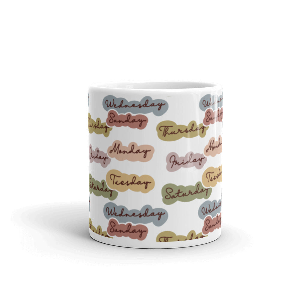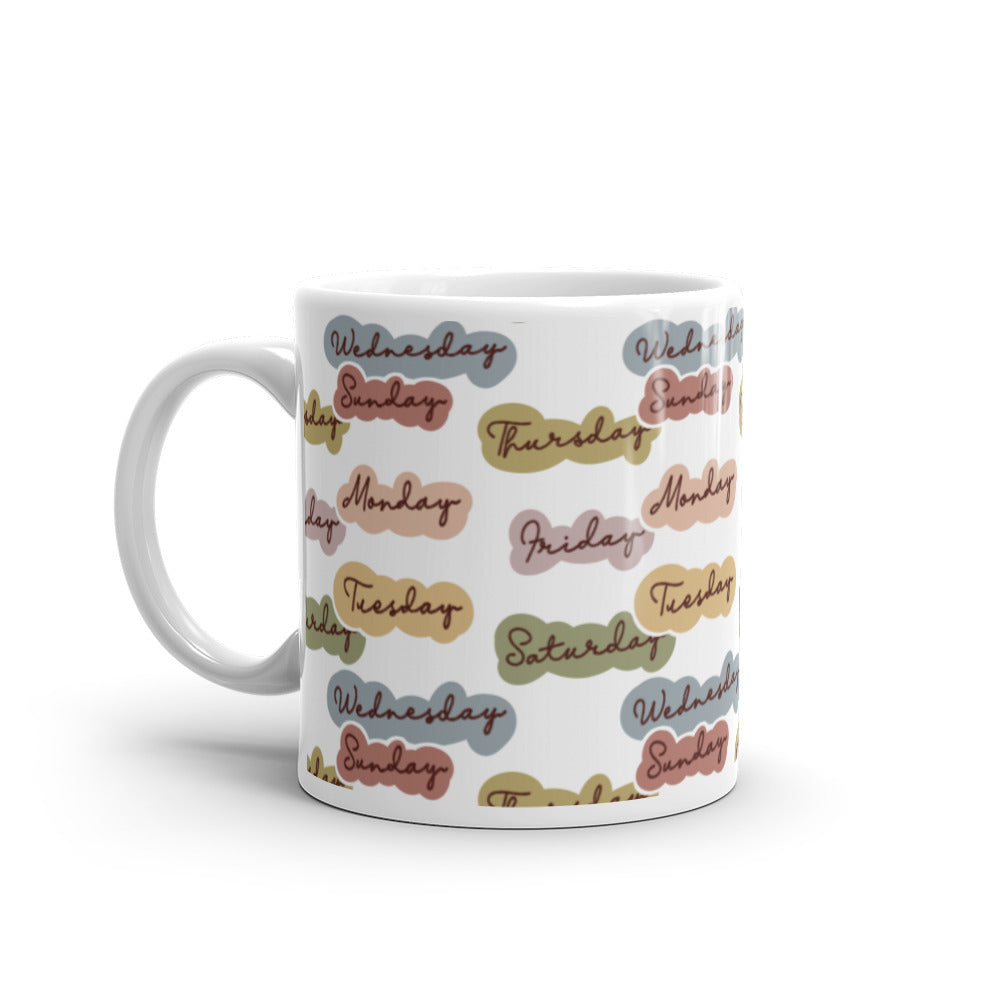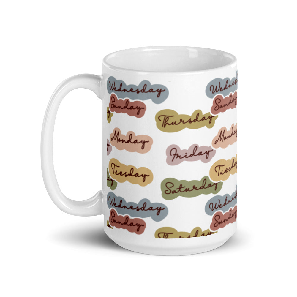 - Design: Days of the week in pastel cloud – shaped backgrounds with handwritten – style text