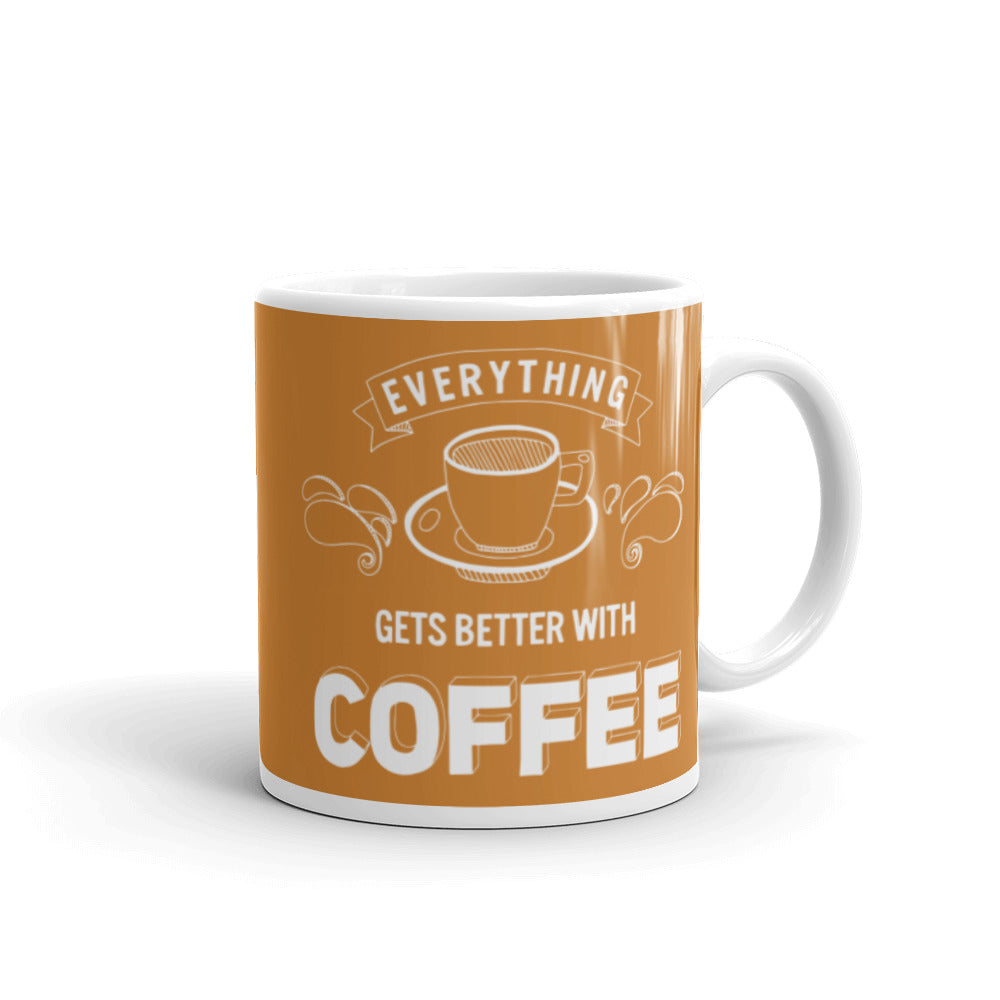 - Design: Retro – inspired with a coffee – themed graphic including a white banner, coffee cup illustration, and text