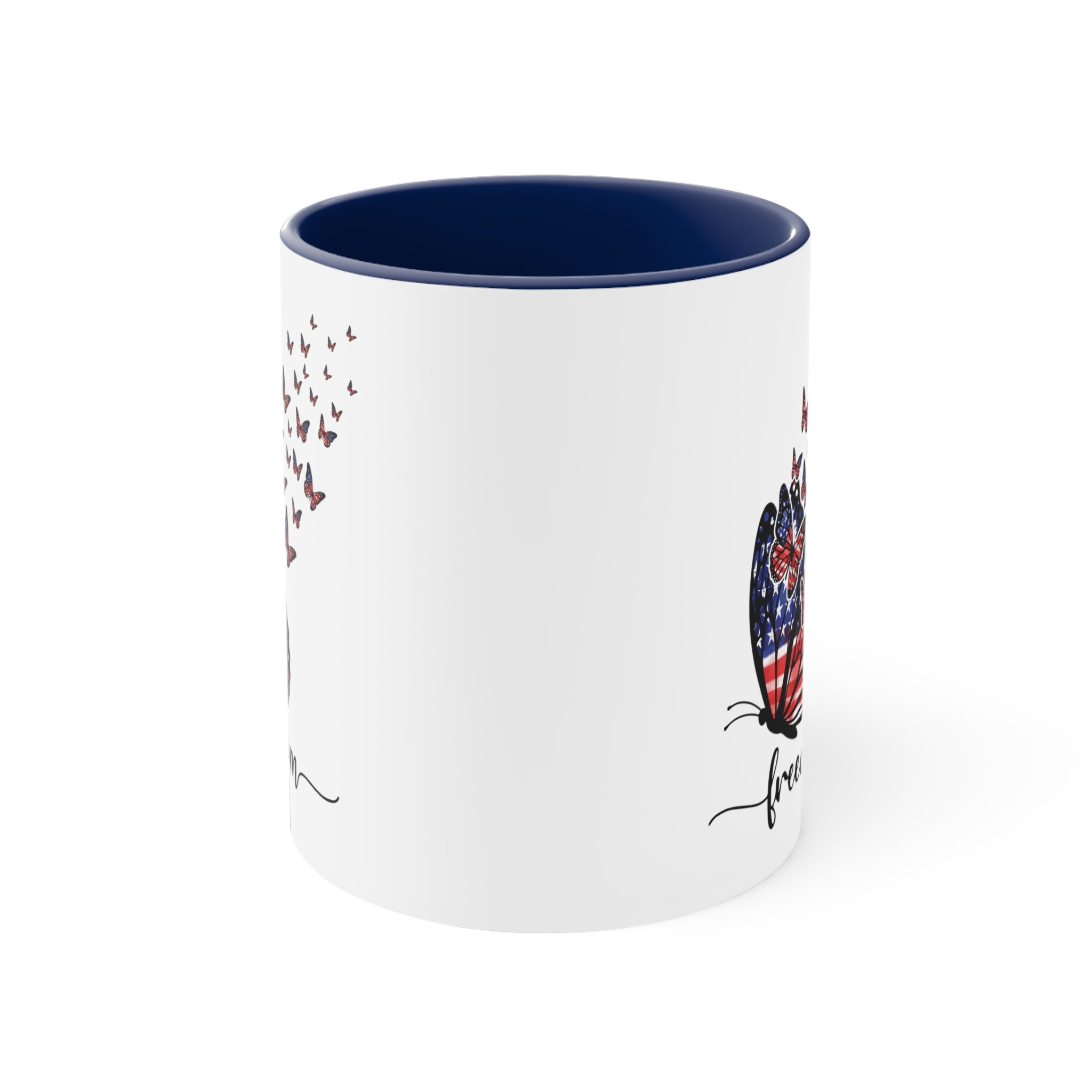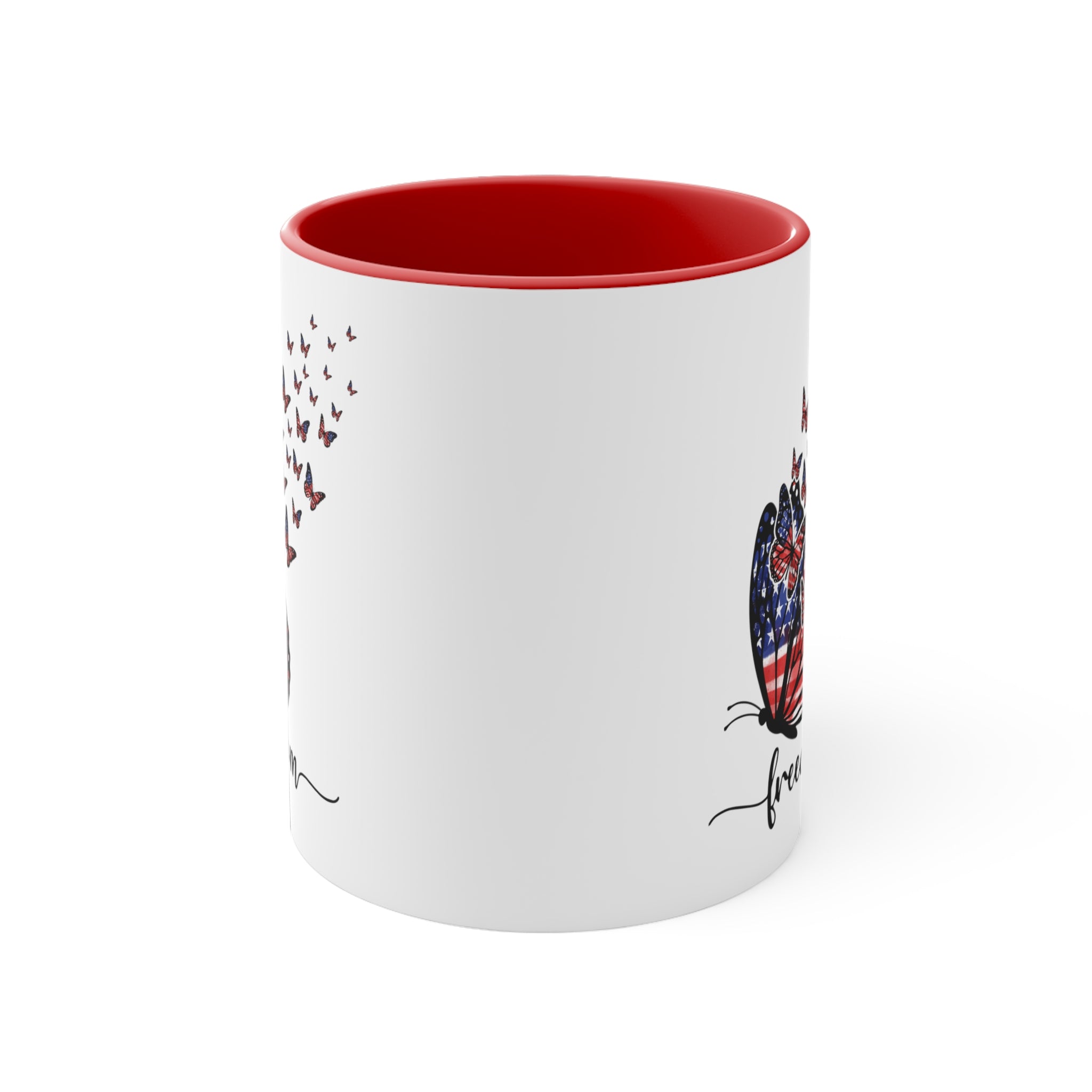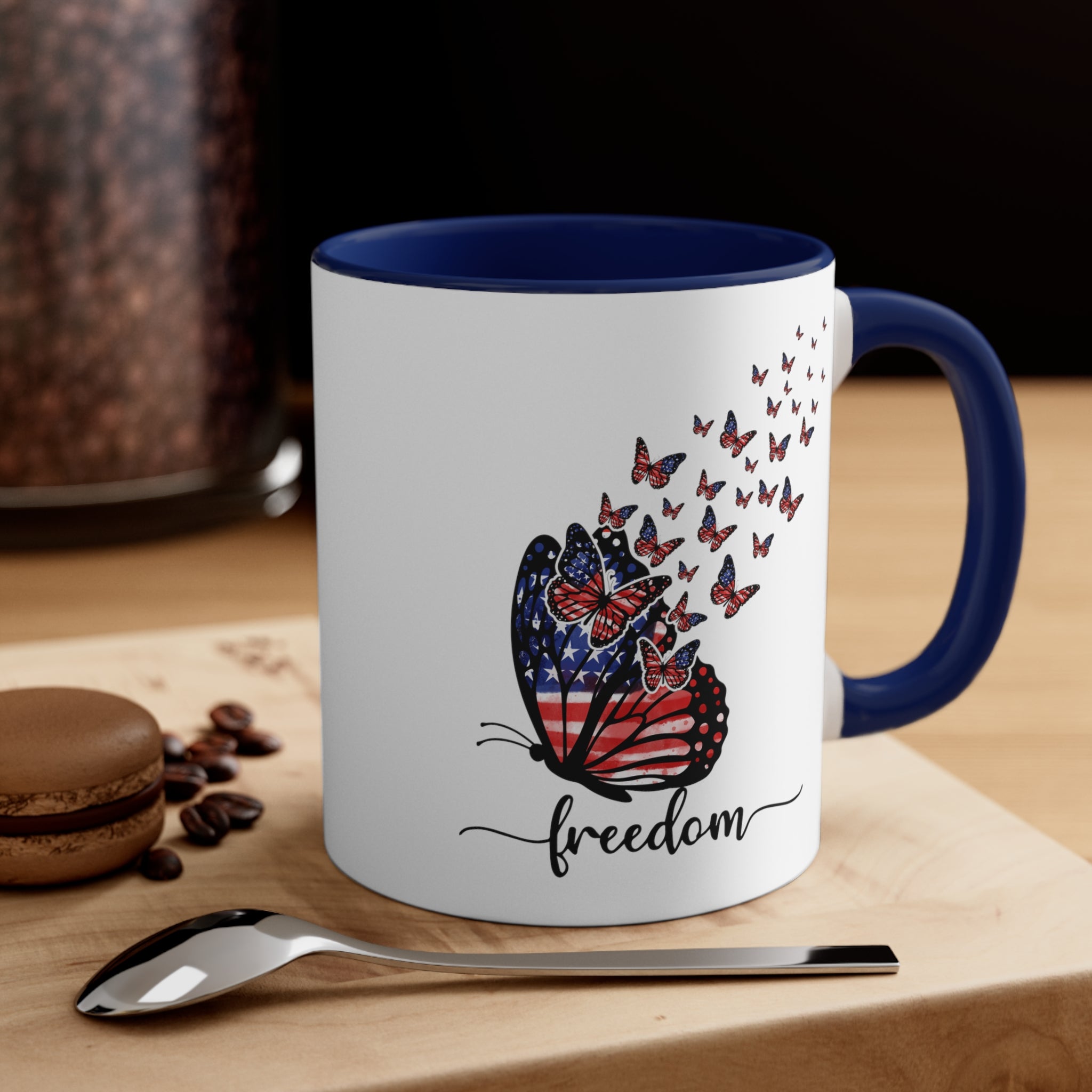 Introducing the Freedom Accent Coffee Mug, a 11oz ceramic masterpiece that combines functionality with a touch of patriotism. This mug is not just a vessel for your favorite hot or cold beverages; it’s a statement piece that celebrates freedom and national pride.