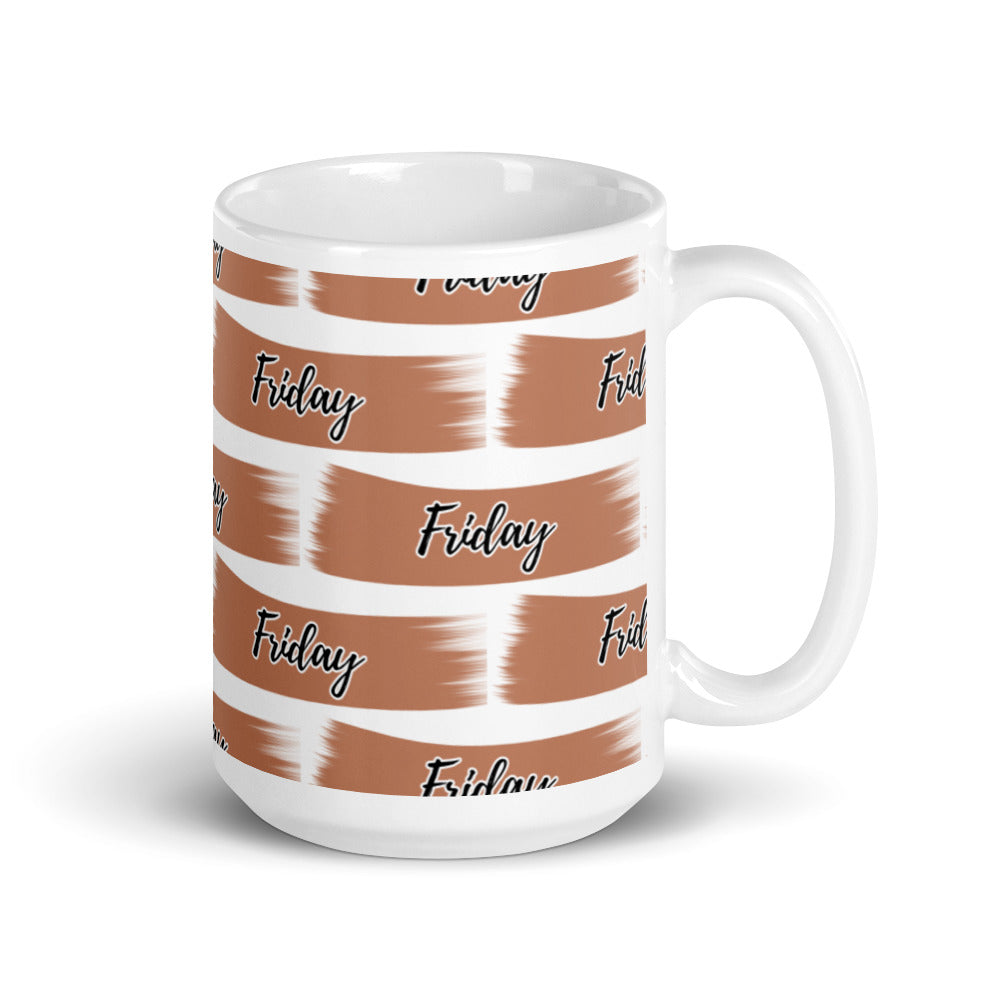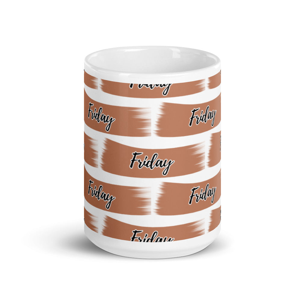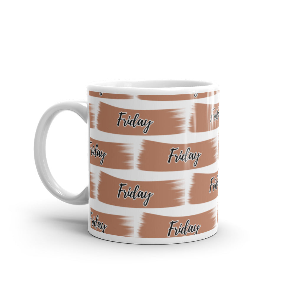 - Pattern: Warm brownish – orange brushstroke with “Friday” text in black cursive with white outline