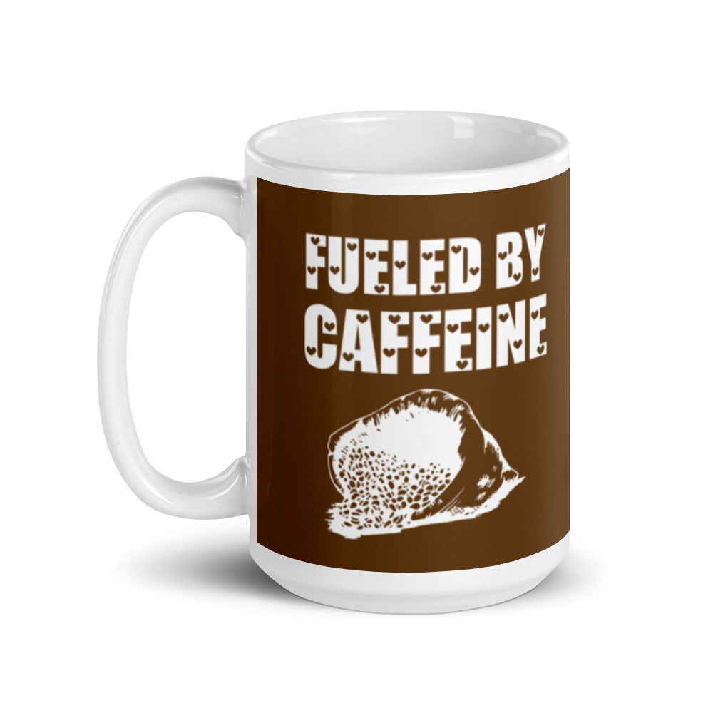 - Design: Humorous caffeine – themed graphic and text with heart symbols