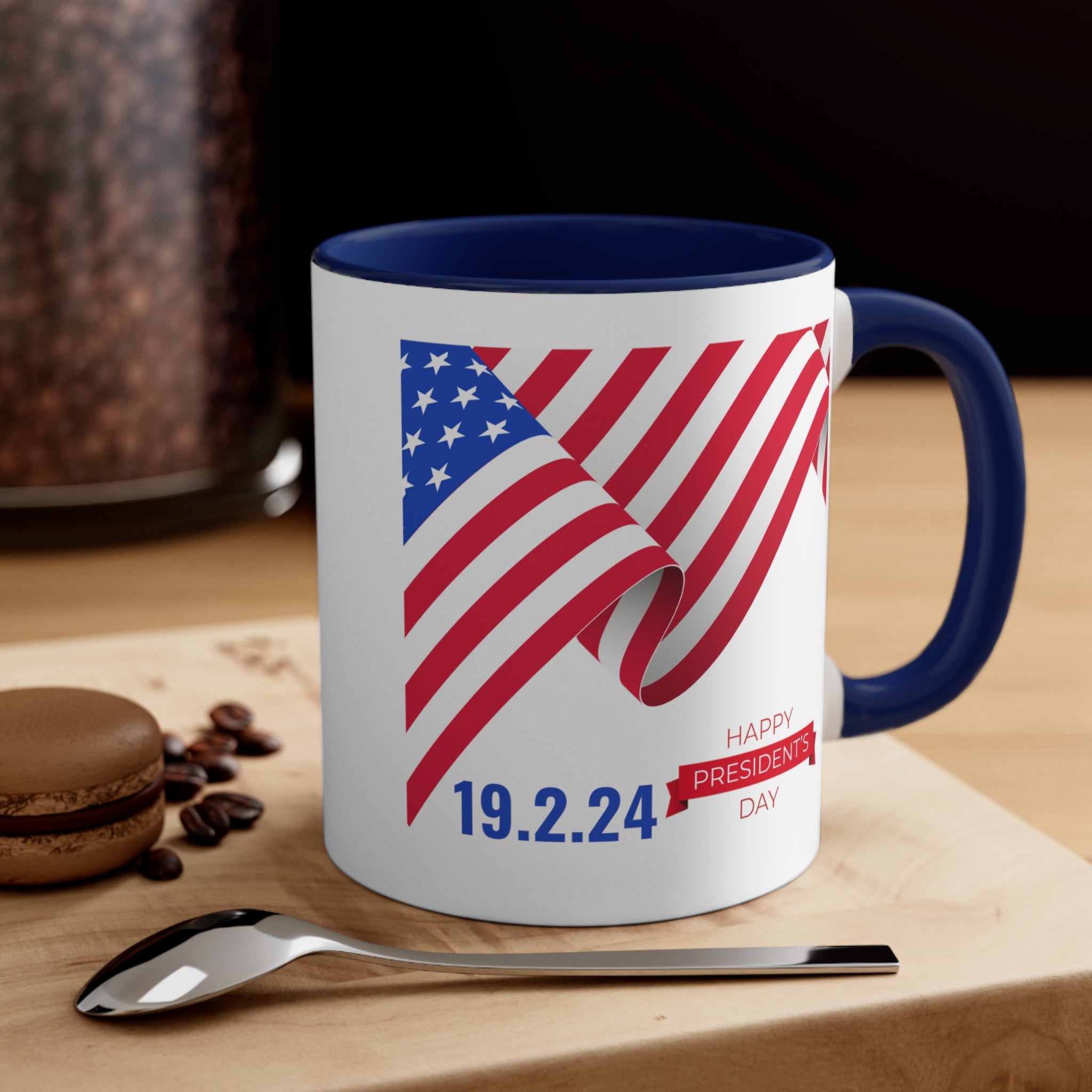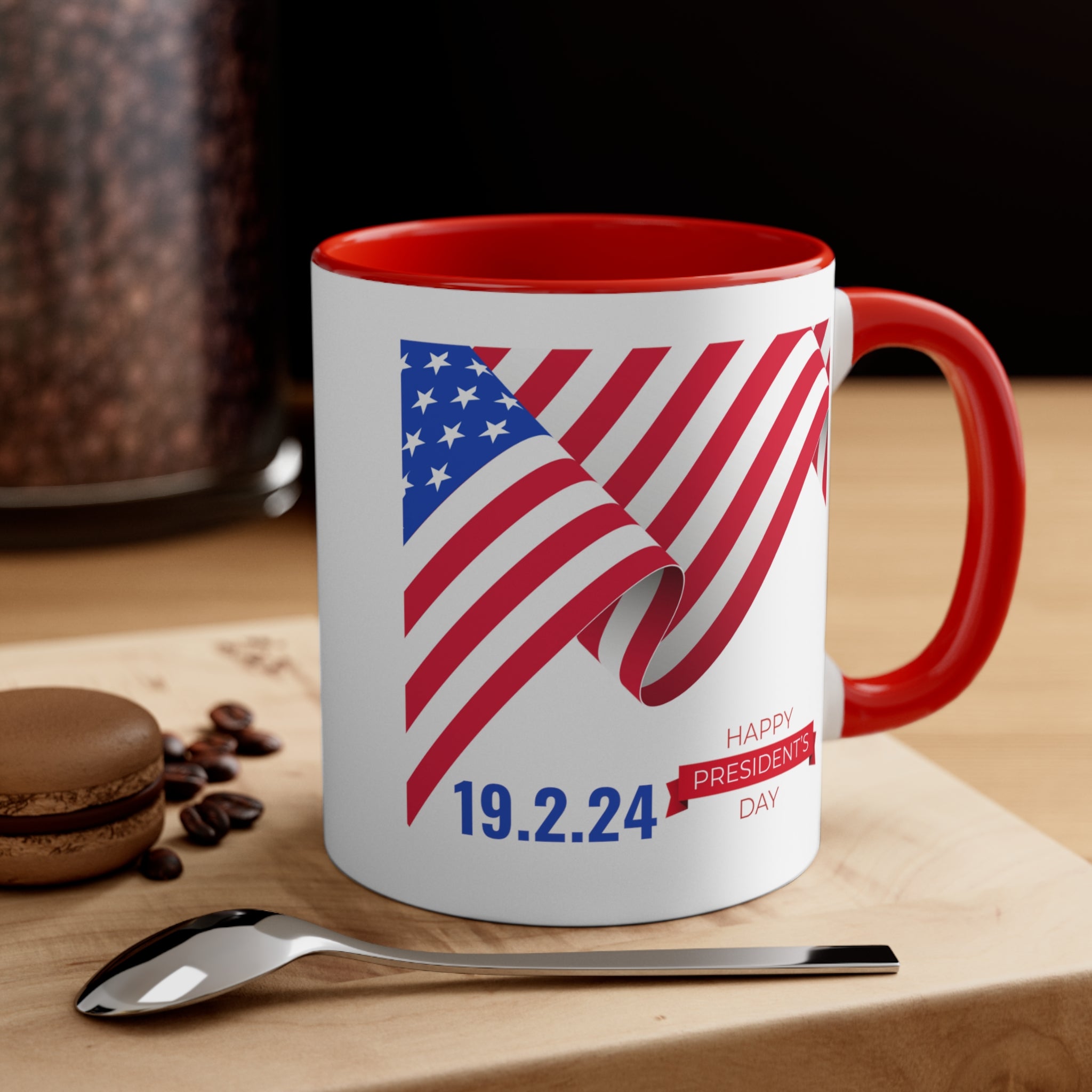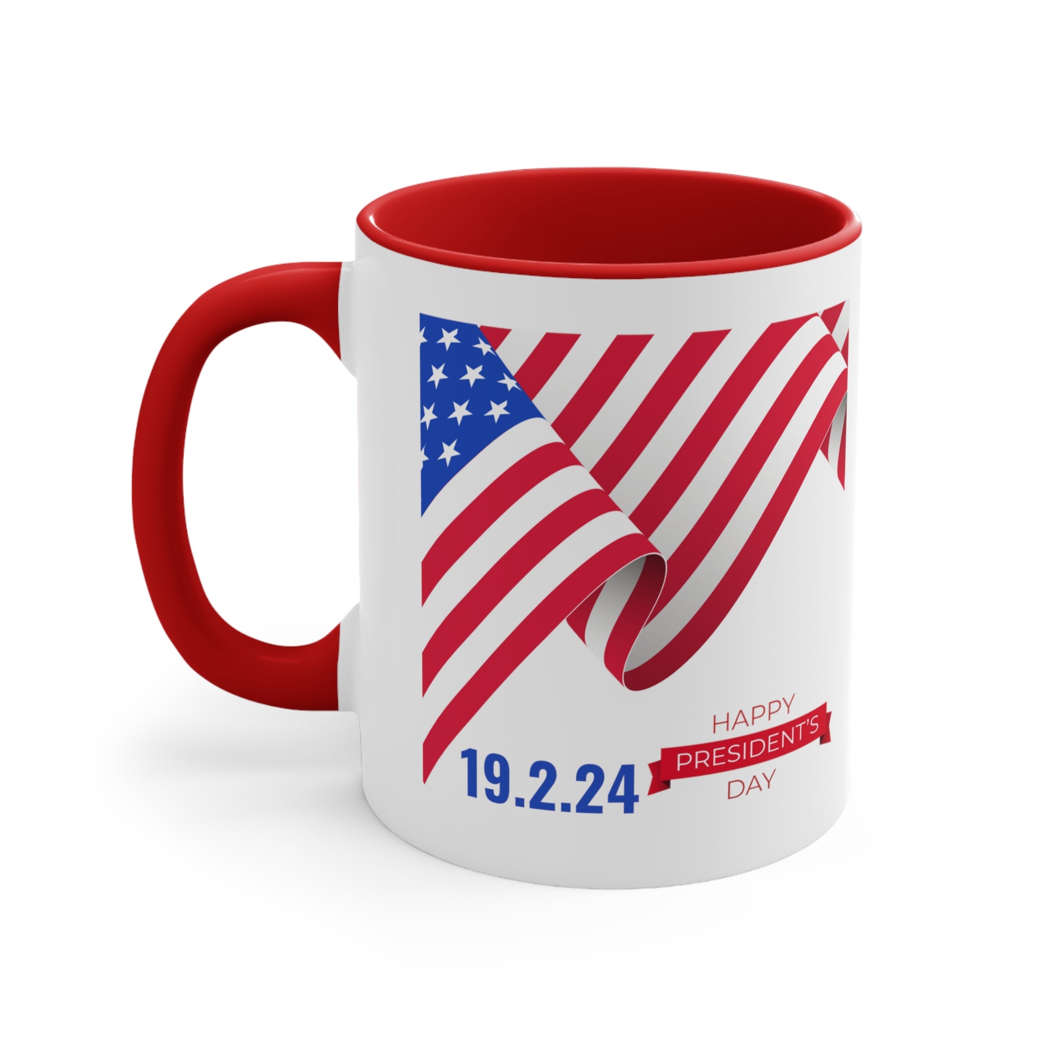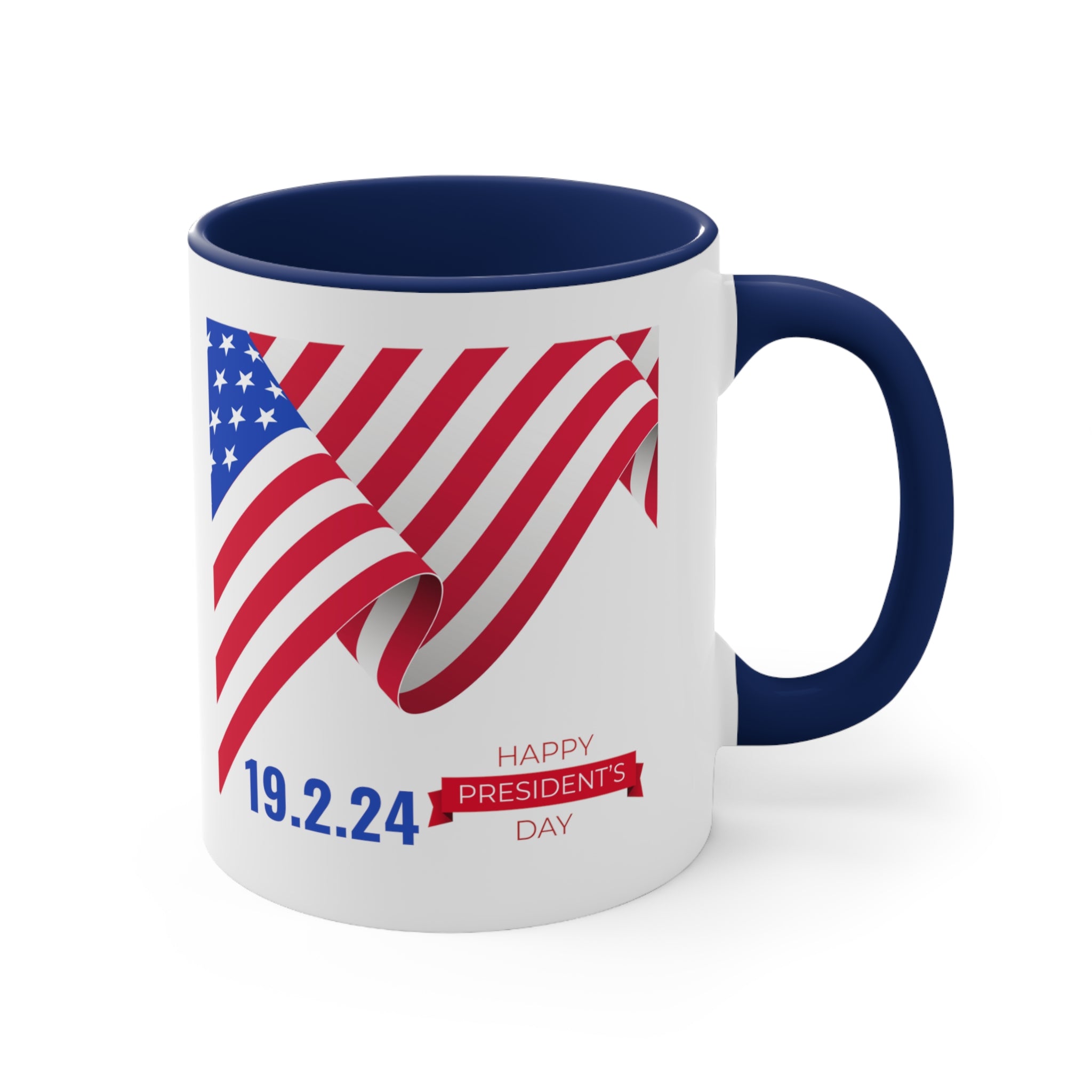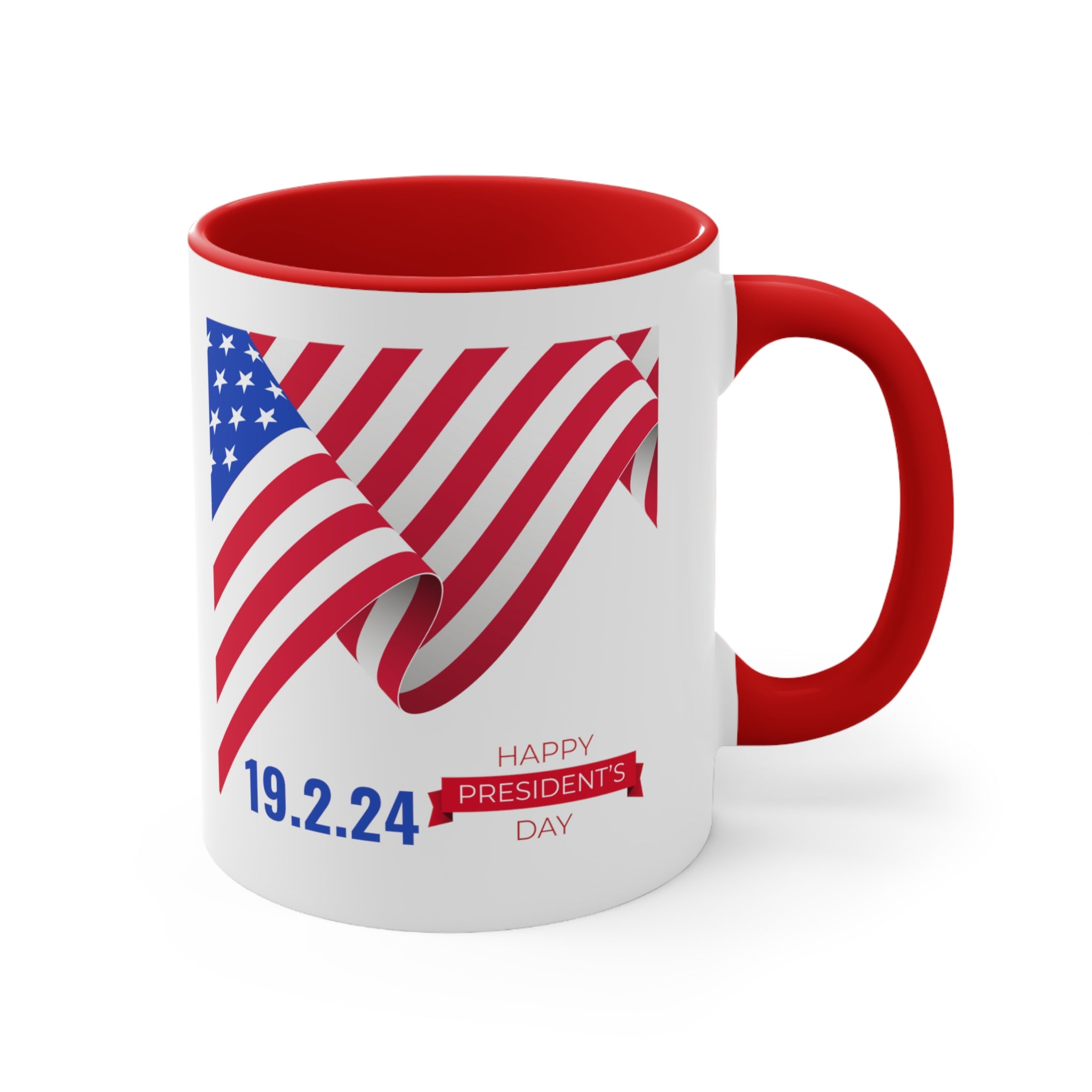 Celebrate President’s Day 2024 in style with our Happy President’s Day 2024 Accent Coffee Mug! This 11oz ceramic coffee mug is a perfect addition to your daily hot beverage routine or a wonderful gift for patriotic individuals.