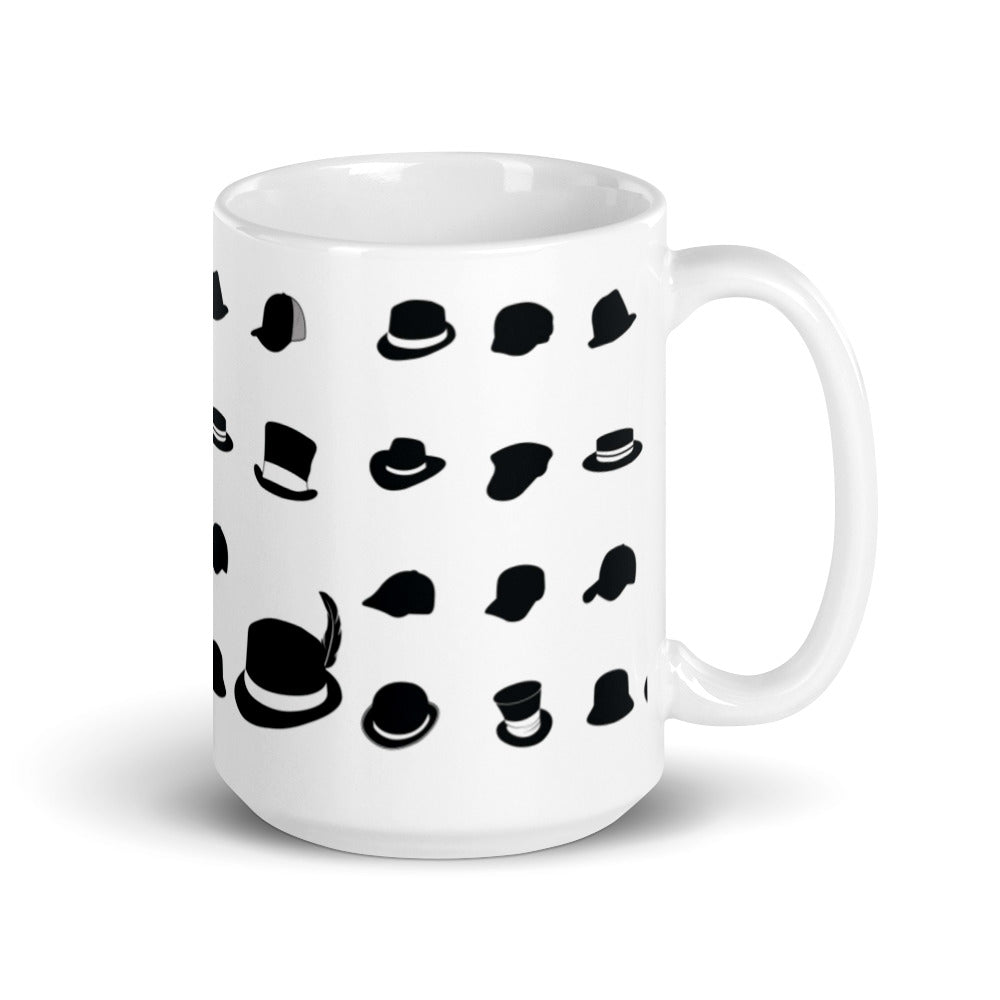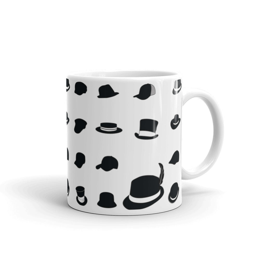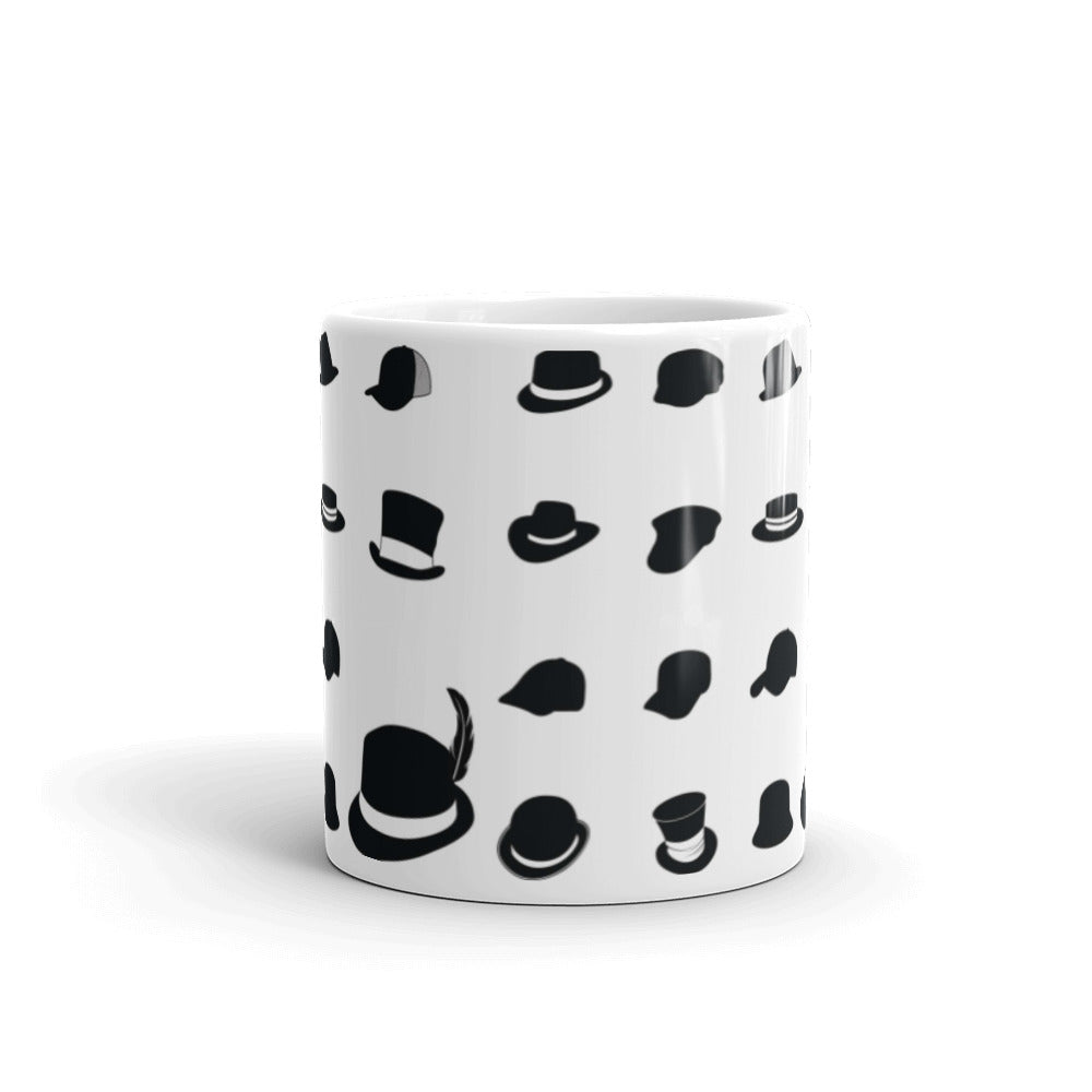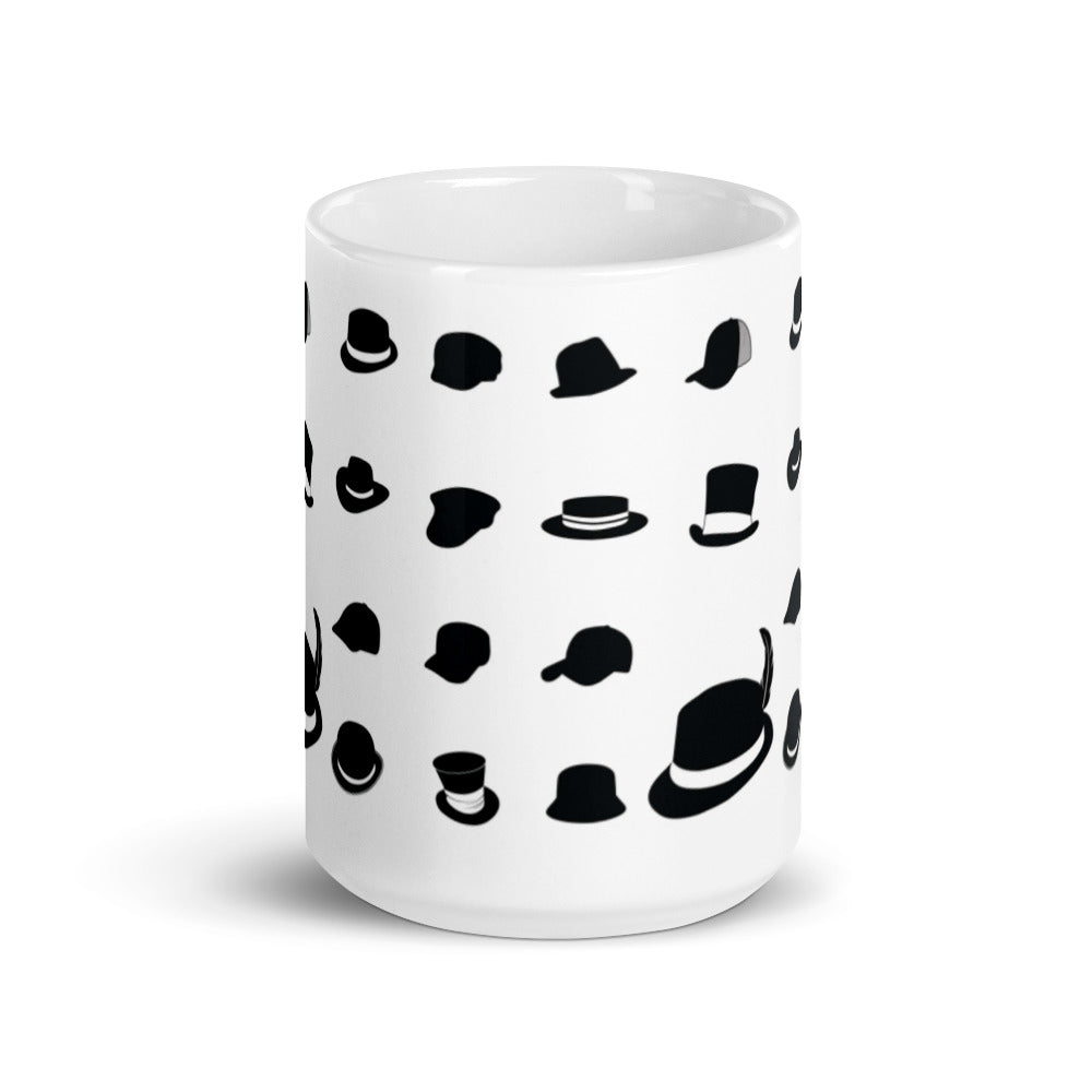 - Design: Repeating pattern of black hat silhouettes on a white glossy surface