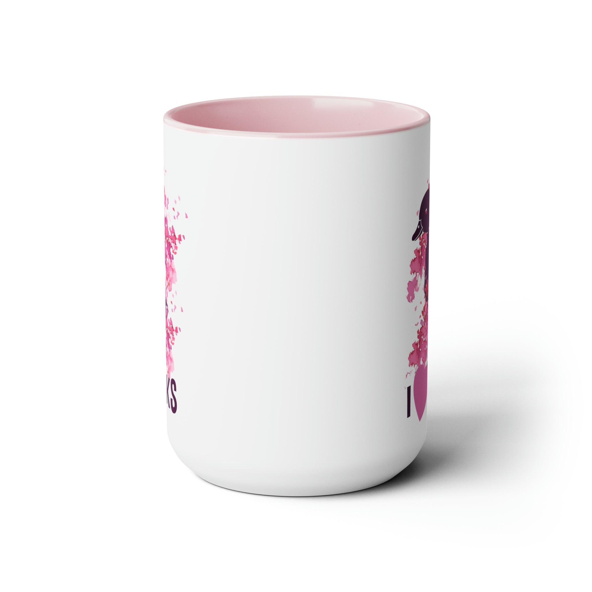 Introducing the I Love Ducks Two-Tone Coffee Mugs, a 15oz ceramic masterpiece designed to bring joy to your daily hot beverage rituals! This mug is a true delight, featuring a classic shape with a handle, perfect for personal use or as a decorative item.