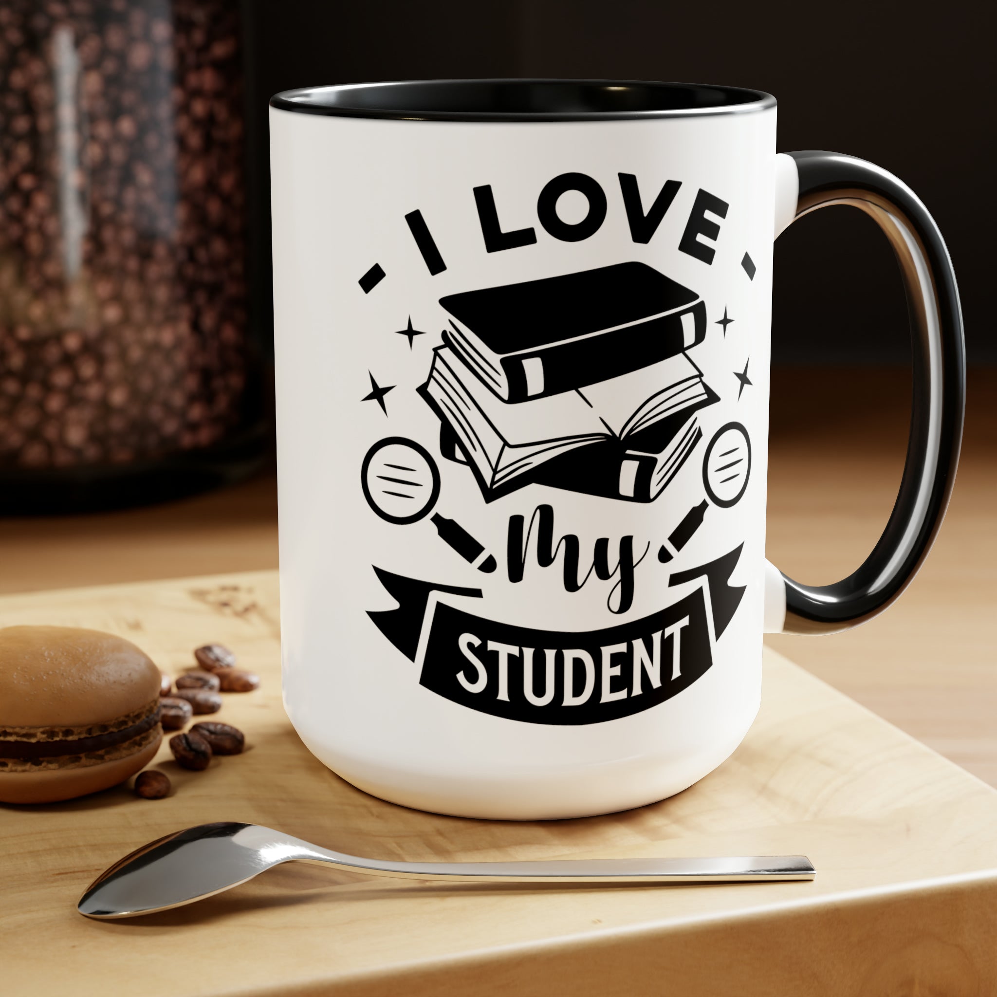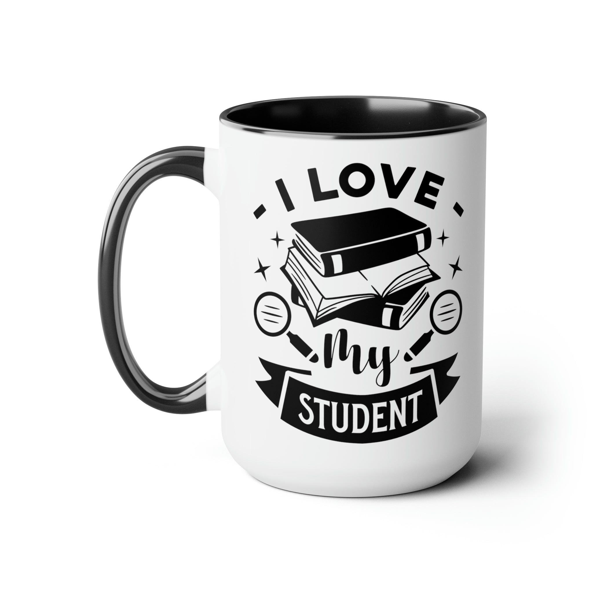 Introducing the I Love My Student Two-Tone Coffee Mugs, a perfect blend of style and functionality. This ceramic mug is designed to bring a touch of academic charm to your daily hot beverage routine.