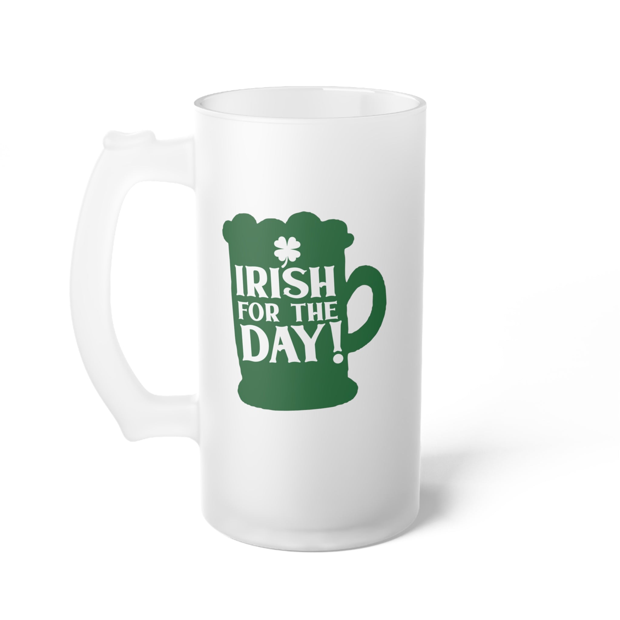 Get into the St. Patrick’s Day spirit with the Irish for the Day Frosted Glass Beer Mug! This large, tall beer stein is the perfect addition to your festive celebrations or a thoughtful gift for a loved one. Crafted from frosted glass, it offers a sleek, modern aesthetic with an opaque white finish that also helps insulate your hands from hot or cold beverages.