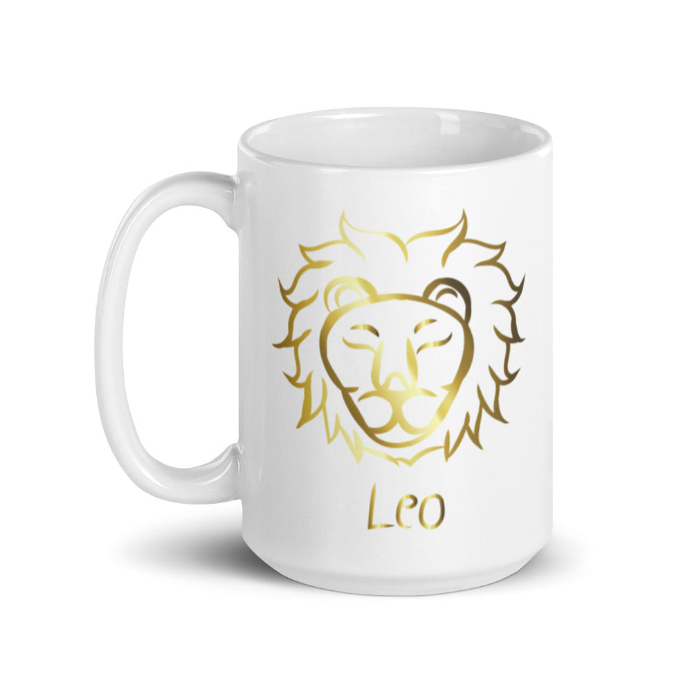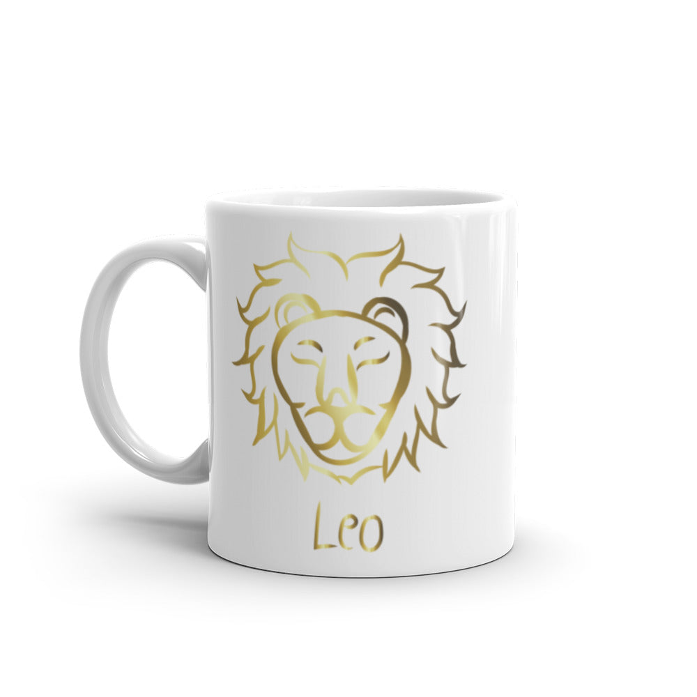 - Design: Stylized lion head (Leo zodiac) with a mane in gold foil, and the word “Leo” in gold below the lion