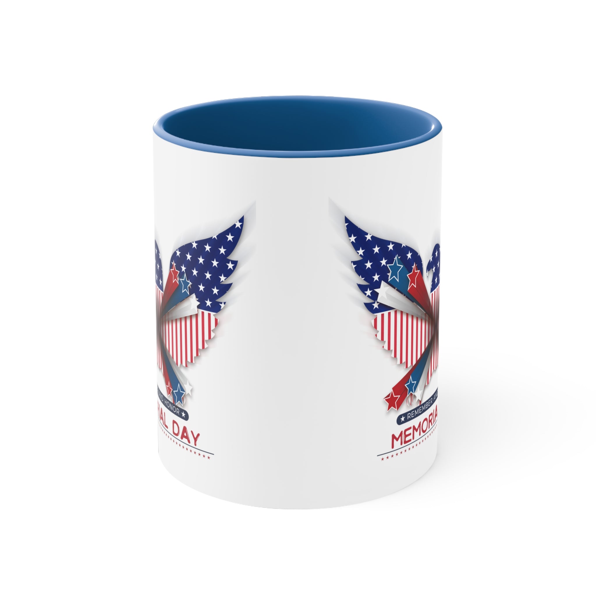 The mug’s main body is a pristine white, providing a clean and elegant backdrop for the stunning Memorial Day-themed design. The interior and handle come in two-tone options of either blue or red, adding a pop of color and creating a striking contrast against the white exterior. The vibrant colors and sharp details of the design are achieved through high-quality sublimation or ceramic printing, ensuring that the artwork remains vivid and resistant to fading even after repeated use.