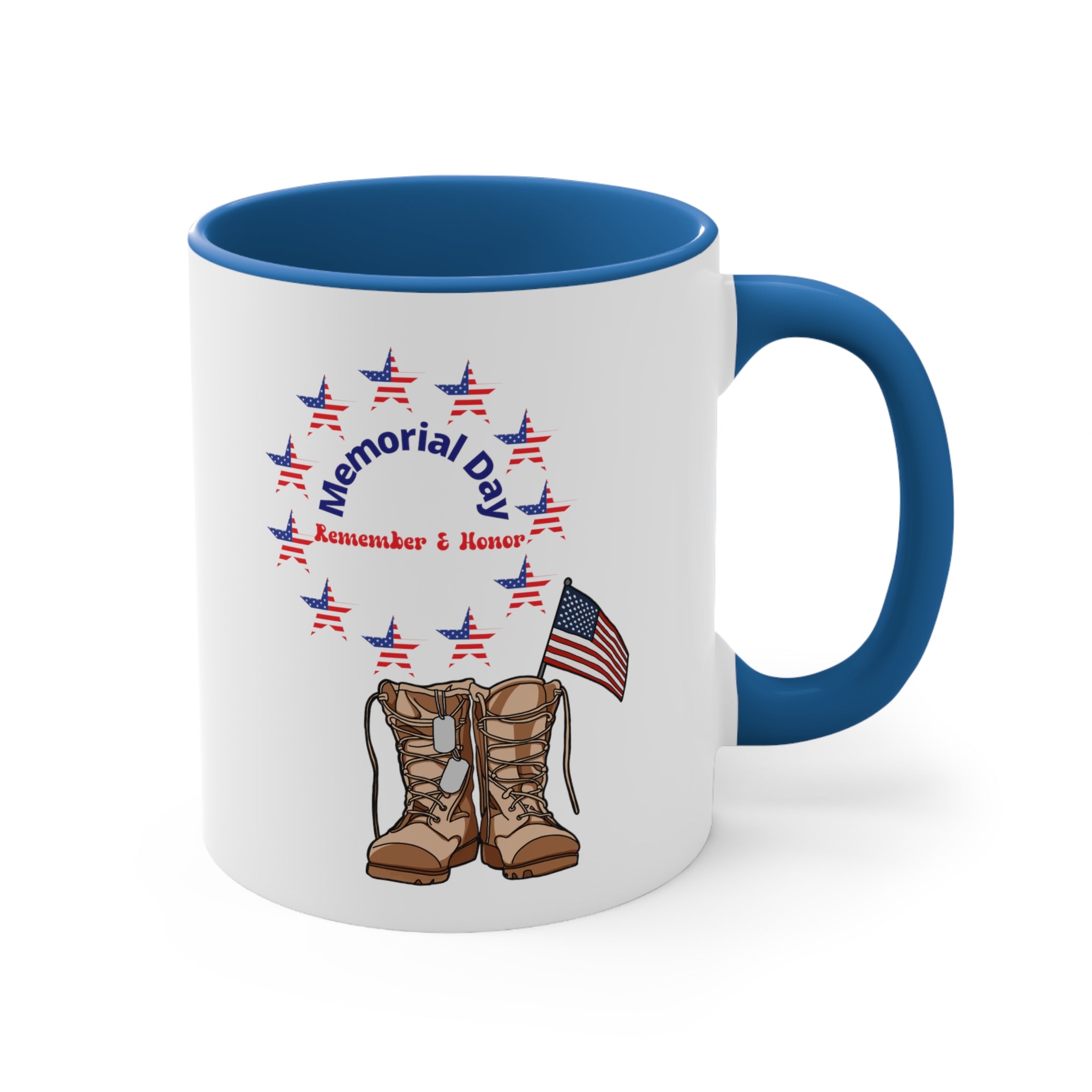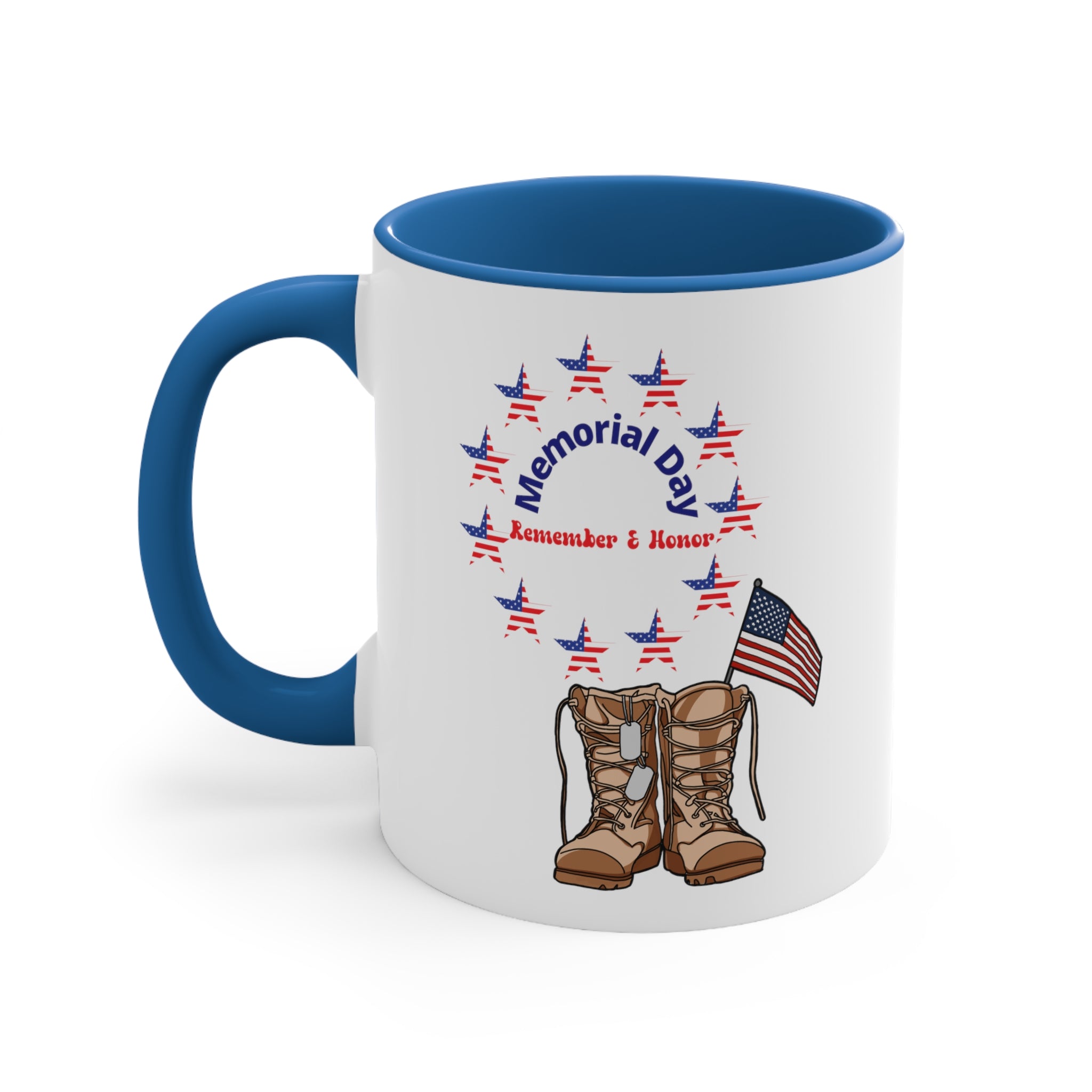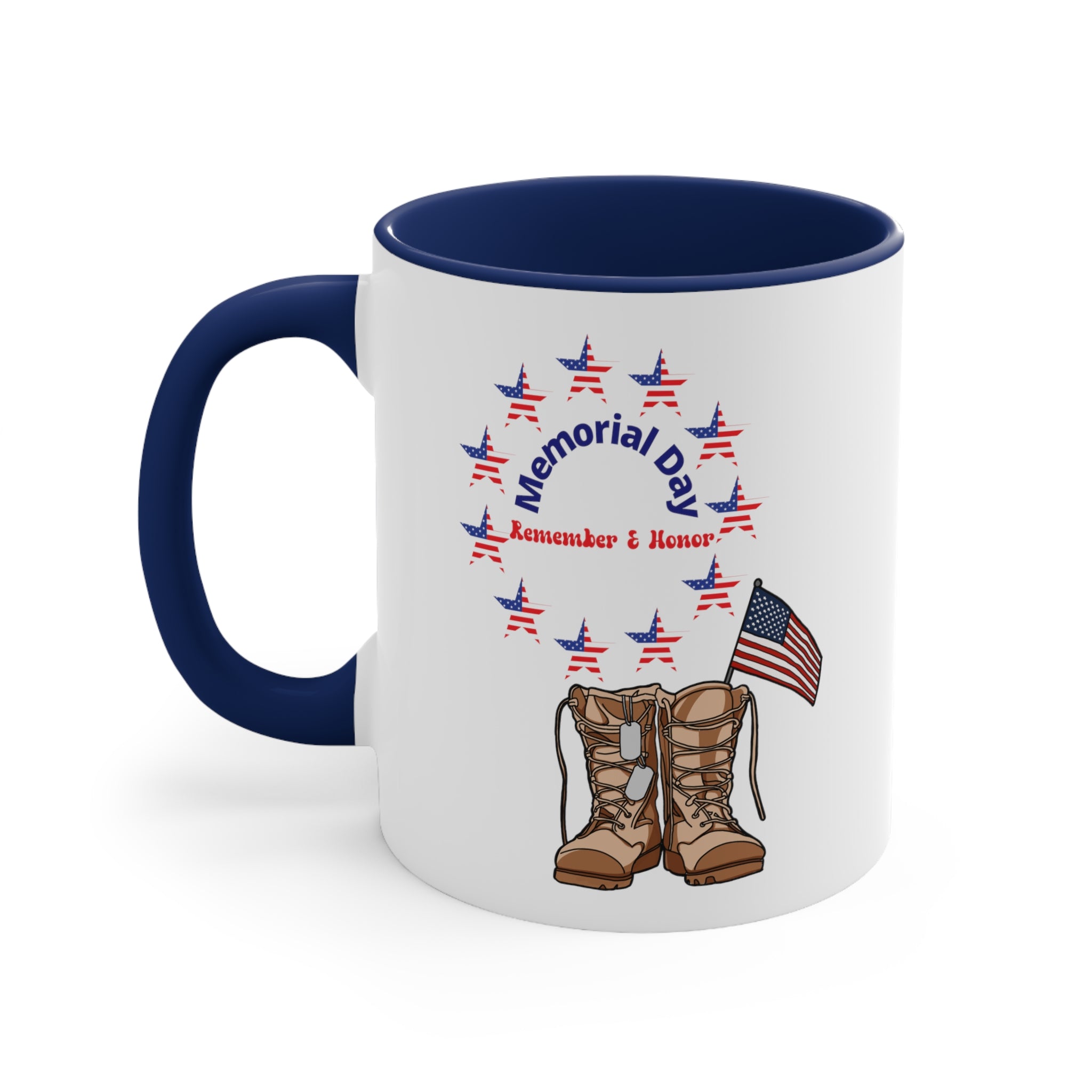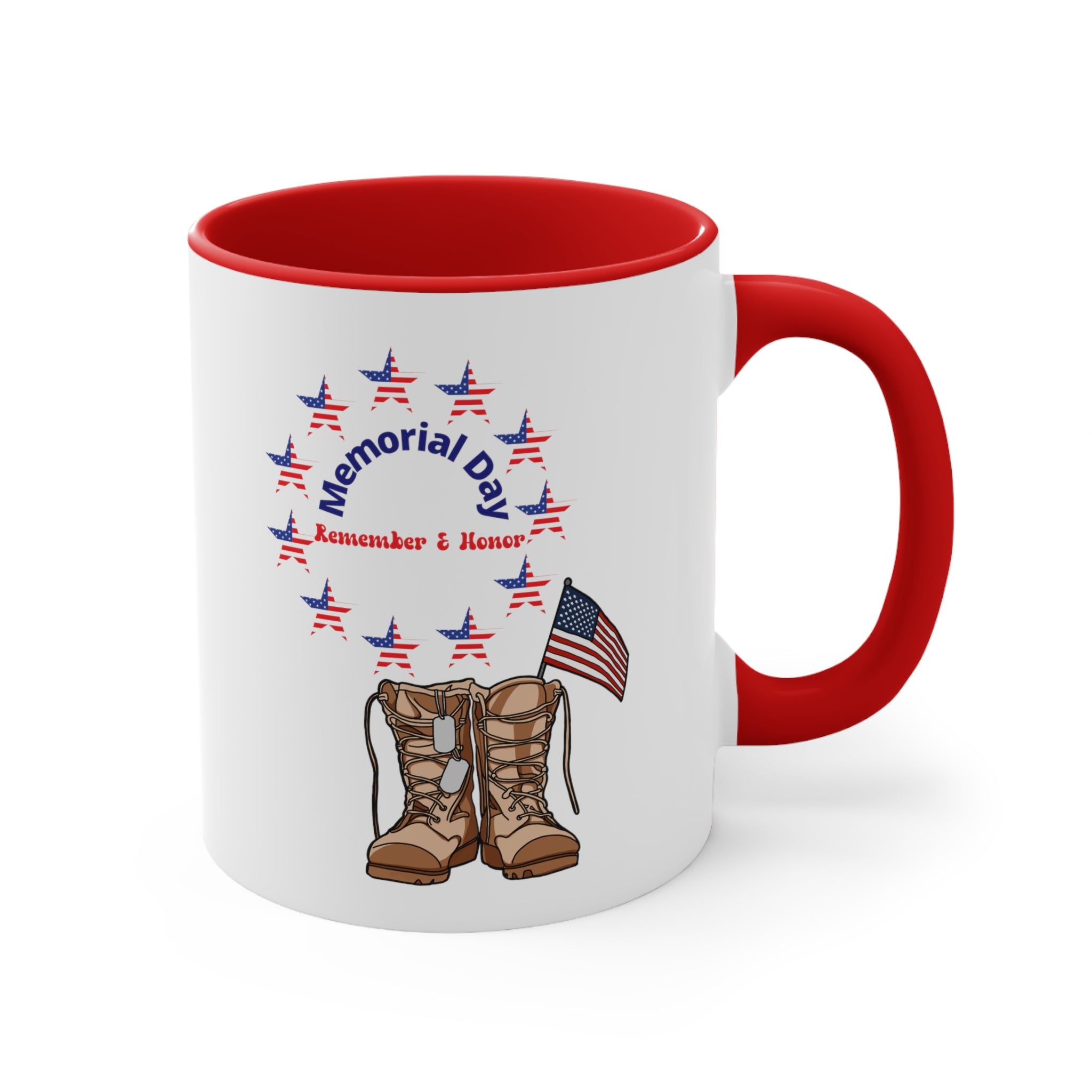 Honor and remember on Memorial Day with our striking Memorial Day Accent Coffee Mug! This 11oz ceramic mug is a perfect blend of patriotism and practicality, suitable for daily use or as a commemorative gift.