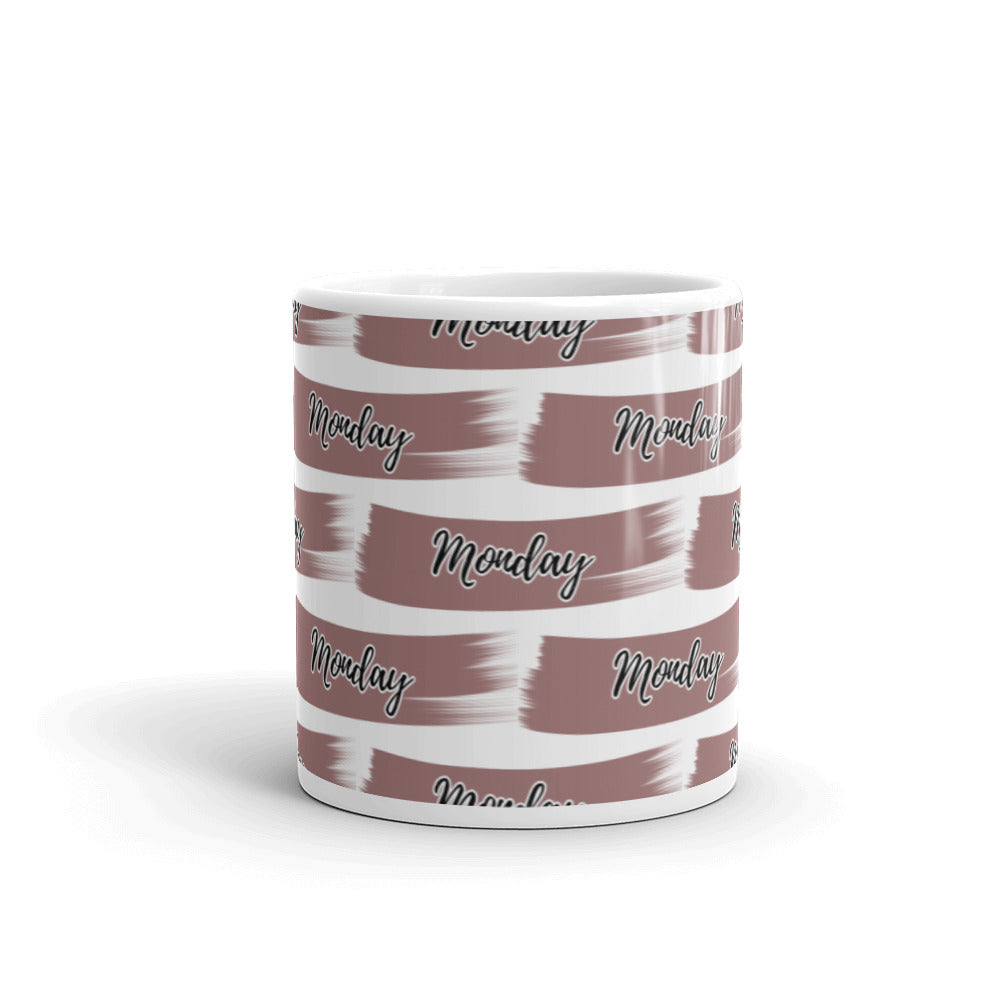 - Pattern: Repeating brushstroke – style stripes in a muted mauve/brownish – pink hue, with black cursive text and white outlines