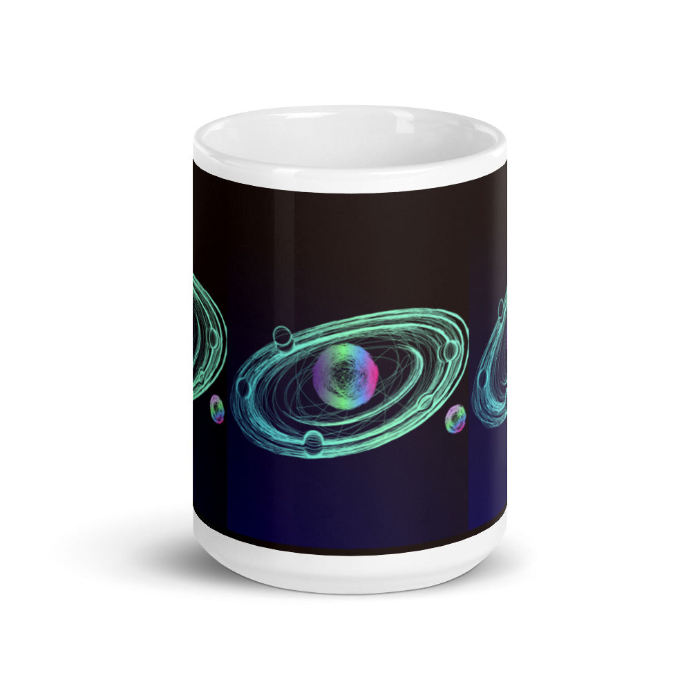 - Design: Orbiting planets in luminant colours with a black – to – dark blue gradient background, glowing cyan orbital lines, a central purple – to – green planet, and smaller pink/purple celestial bodies