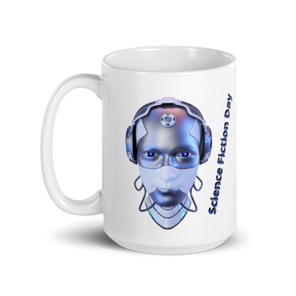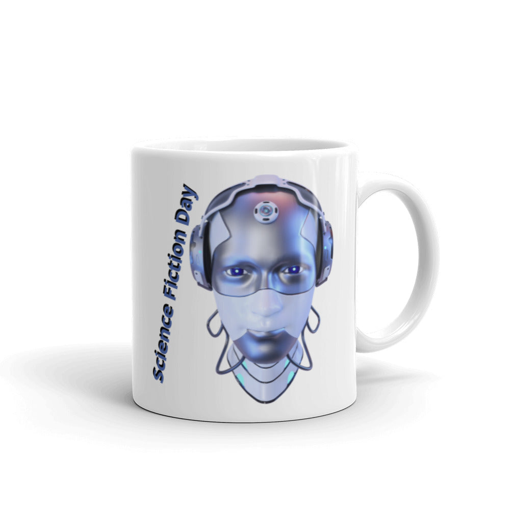 - Design: A detailed sci – fi humanoid robot with the text “Science Fiction Day”
