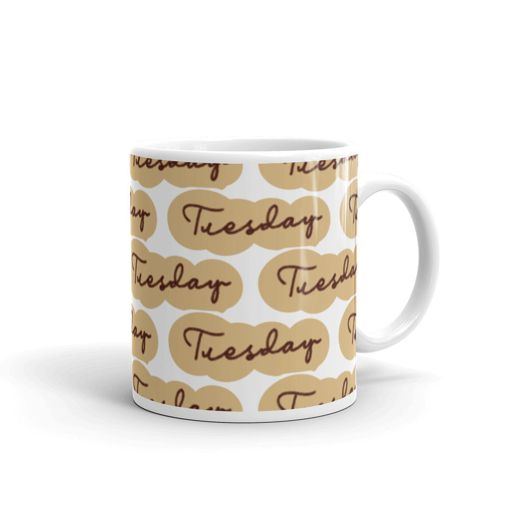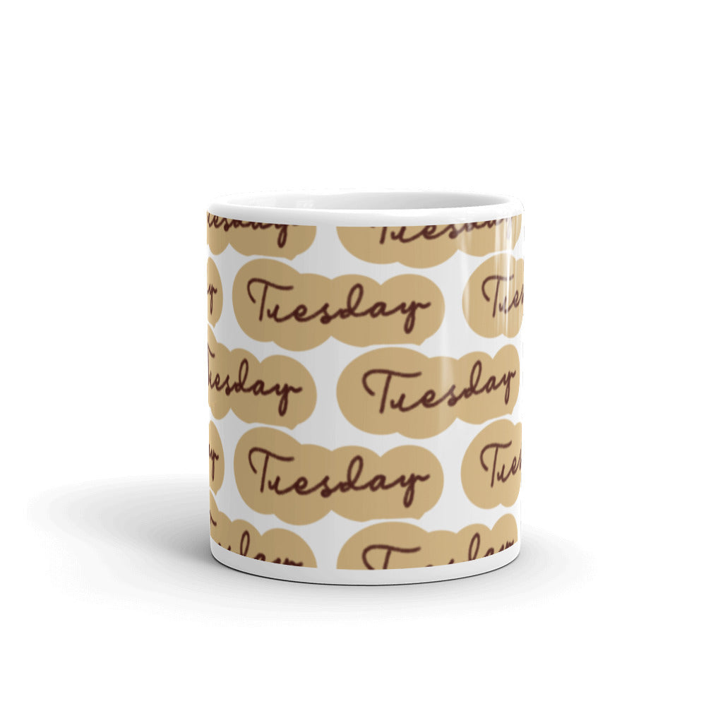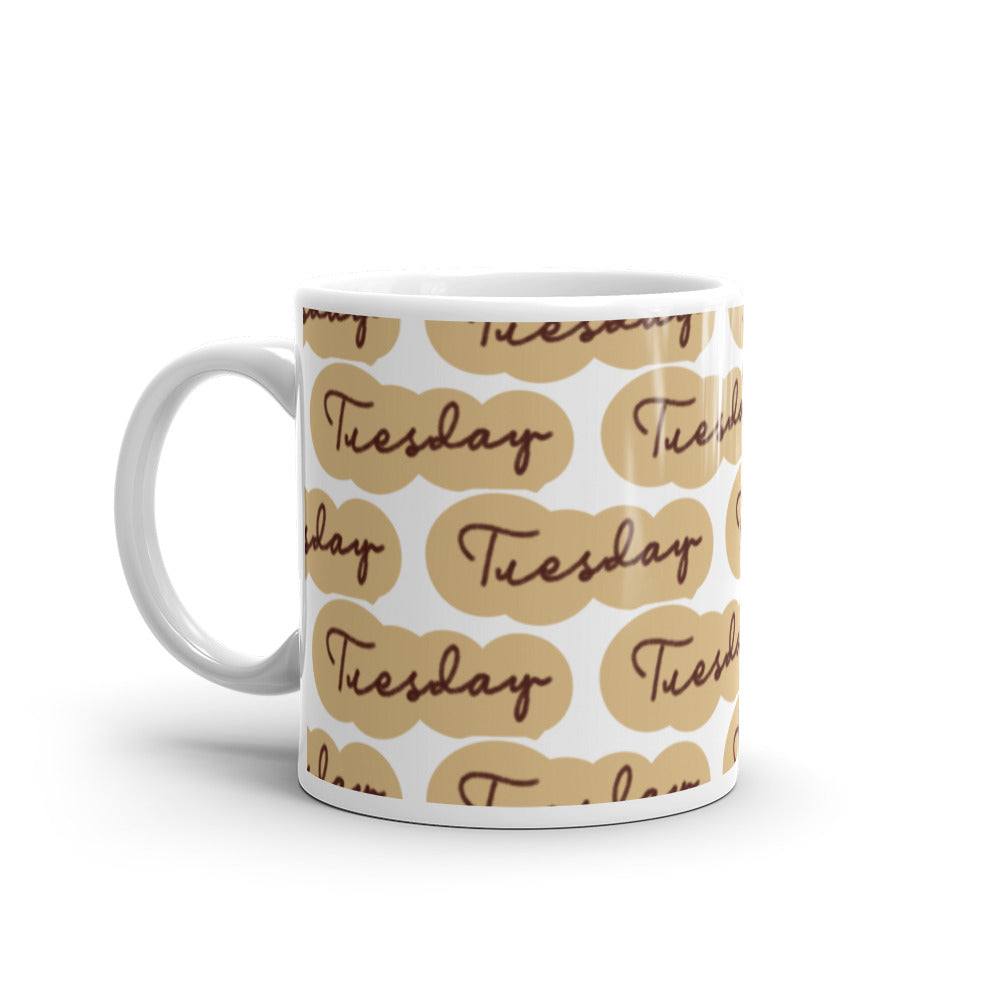 - Pattern: Repeating ‘Tuesday’ pattern in flowing script within beige ovals