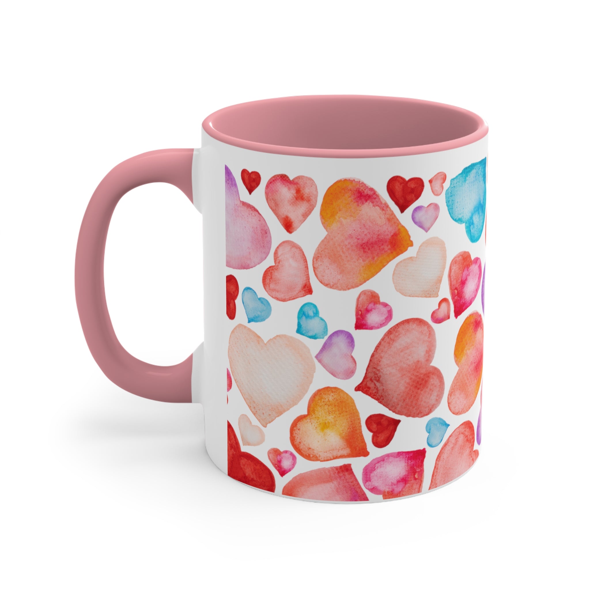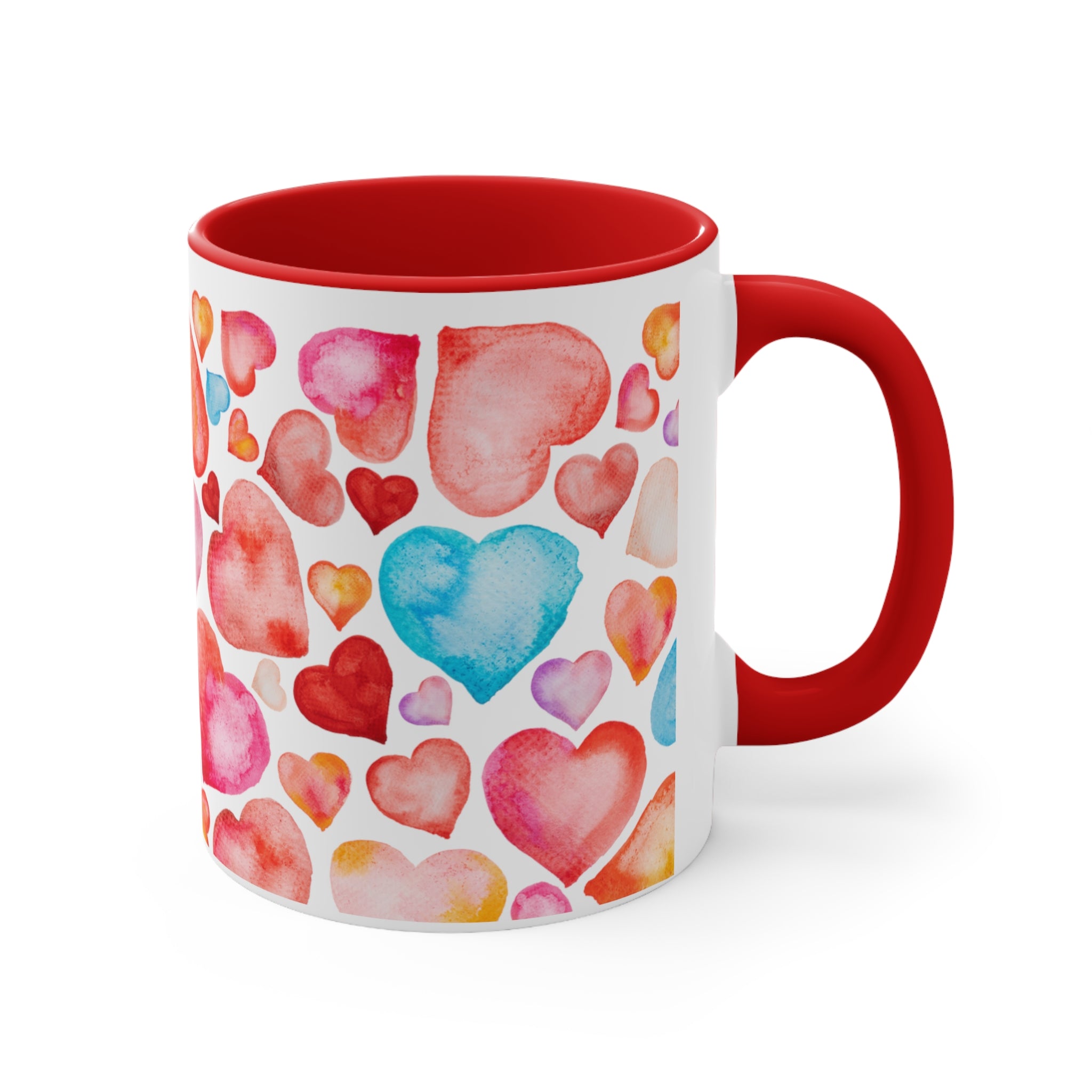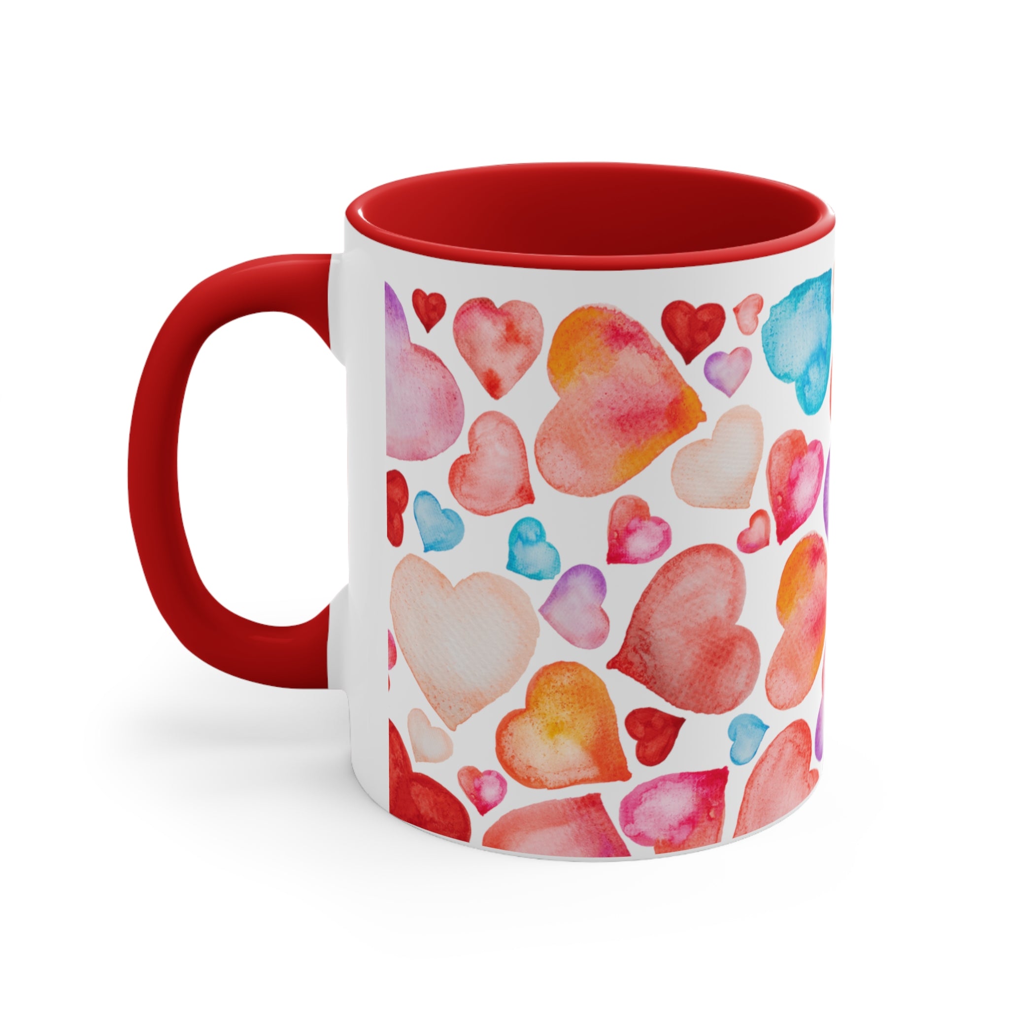 Indulge in the charm of our Valentine Hearts Accent Coffee Mug, a delightful addition to your daily beverage routine. This 11oz ceramic mug is a perfect blend of style and functionality, designed to bring a touch of romance and color to every sip.