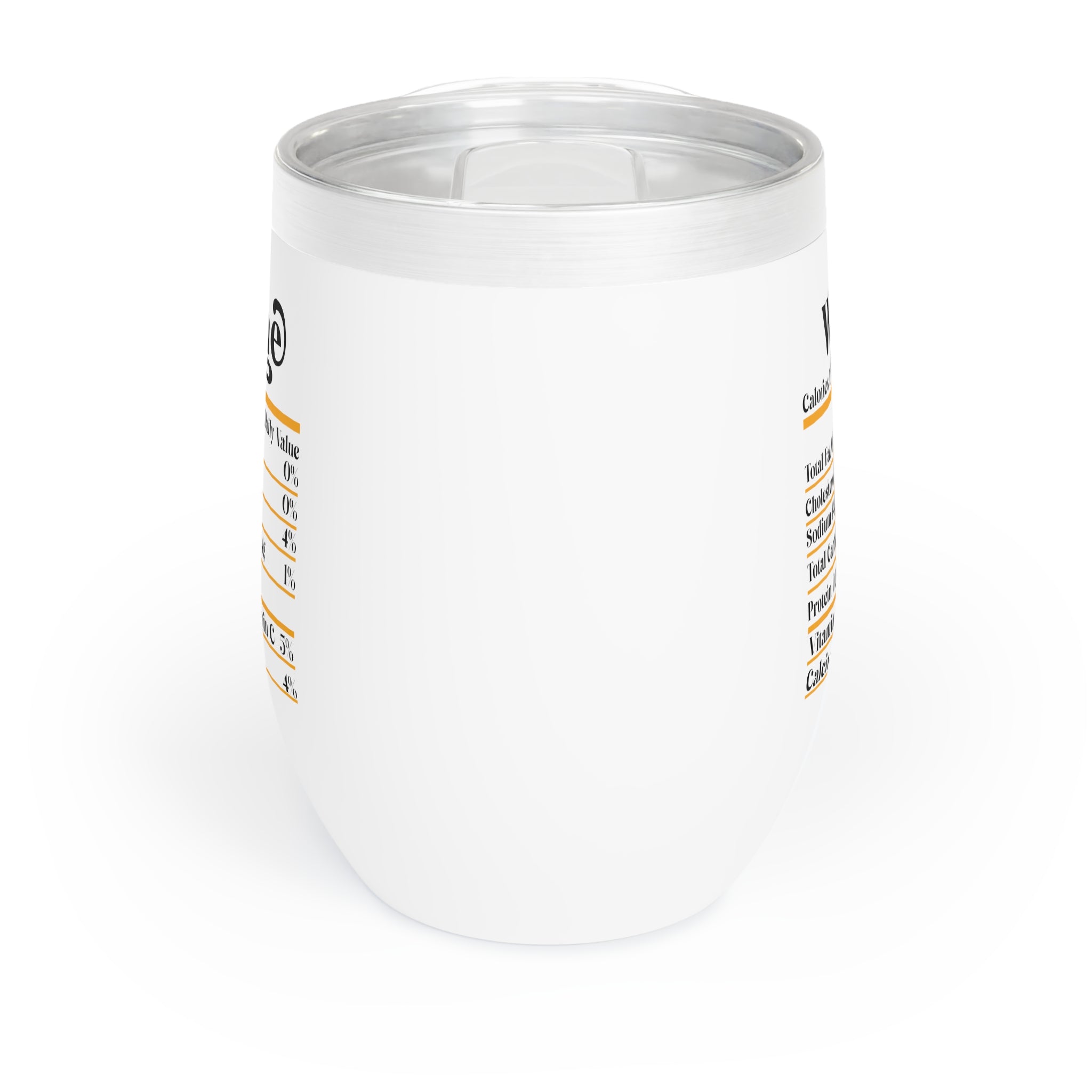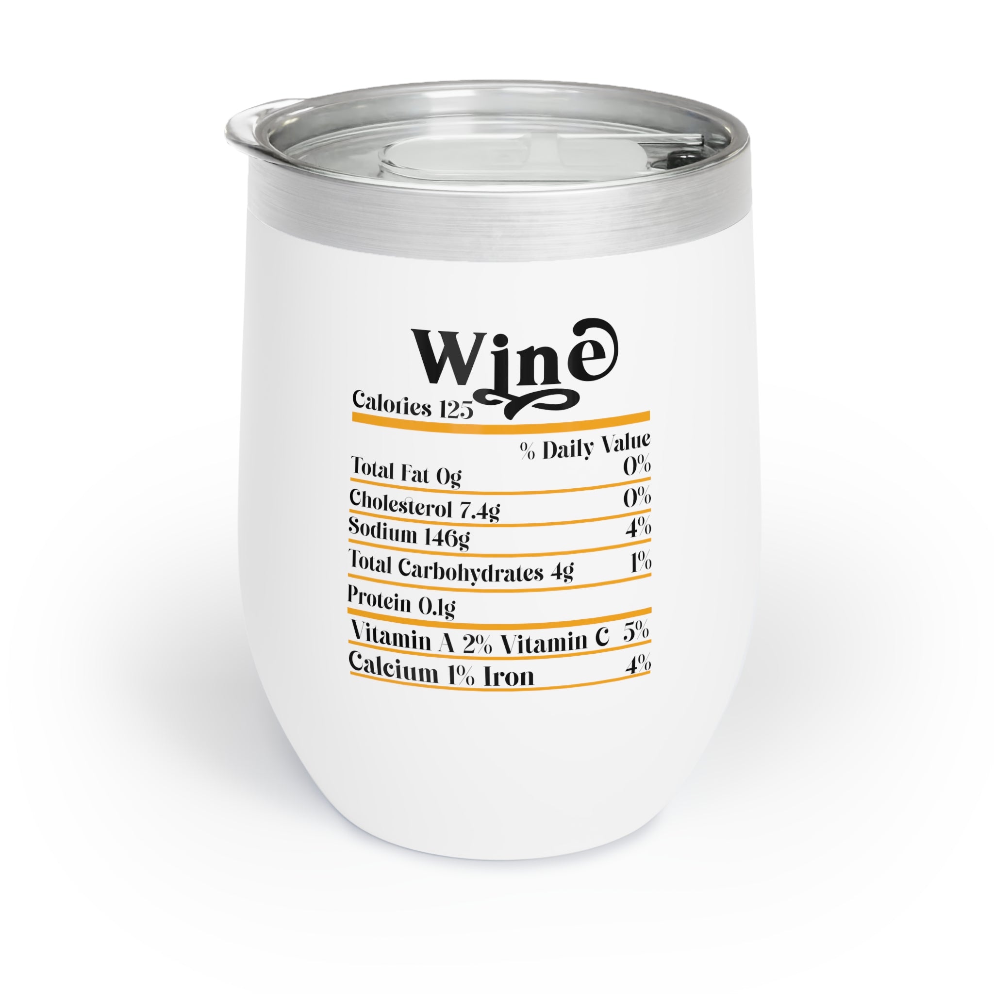 What makes this tumbler truly stand out is its playful “wine nutrition label” design. With black text and orange/yellow accents, it gives the appearance of a real food nutrition label. The word “Wine” is written in a playful, cursive font, and details like “Calories 125” and other nutritional info are formatted just like on a real label, separated by orange lines and with % Daily Value labels, adding both humor and personality.
