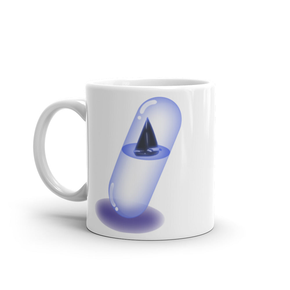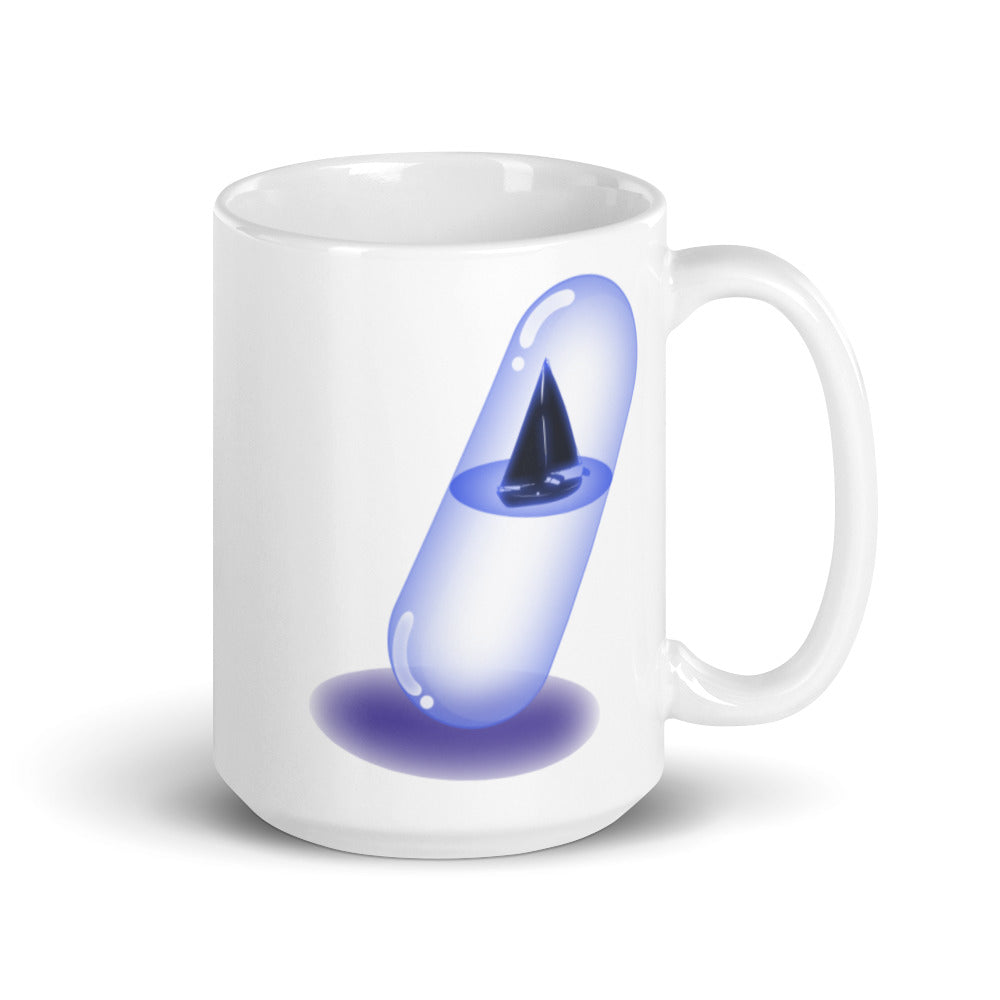- Graphic Details: Blue semi – transparent capsule, black sailboat, blue liquid gradient, and purple shadow